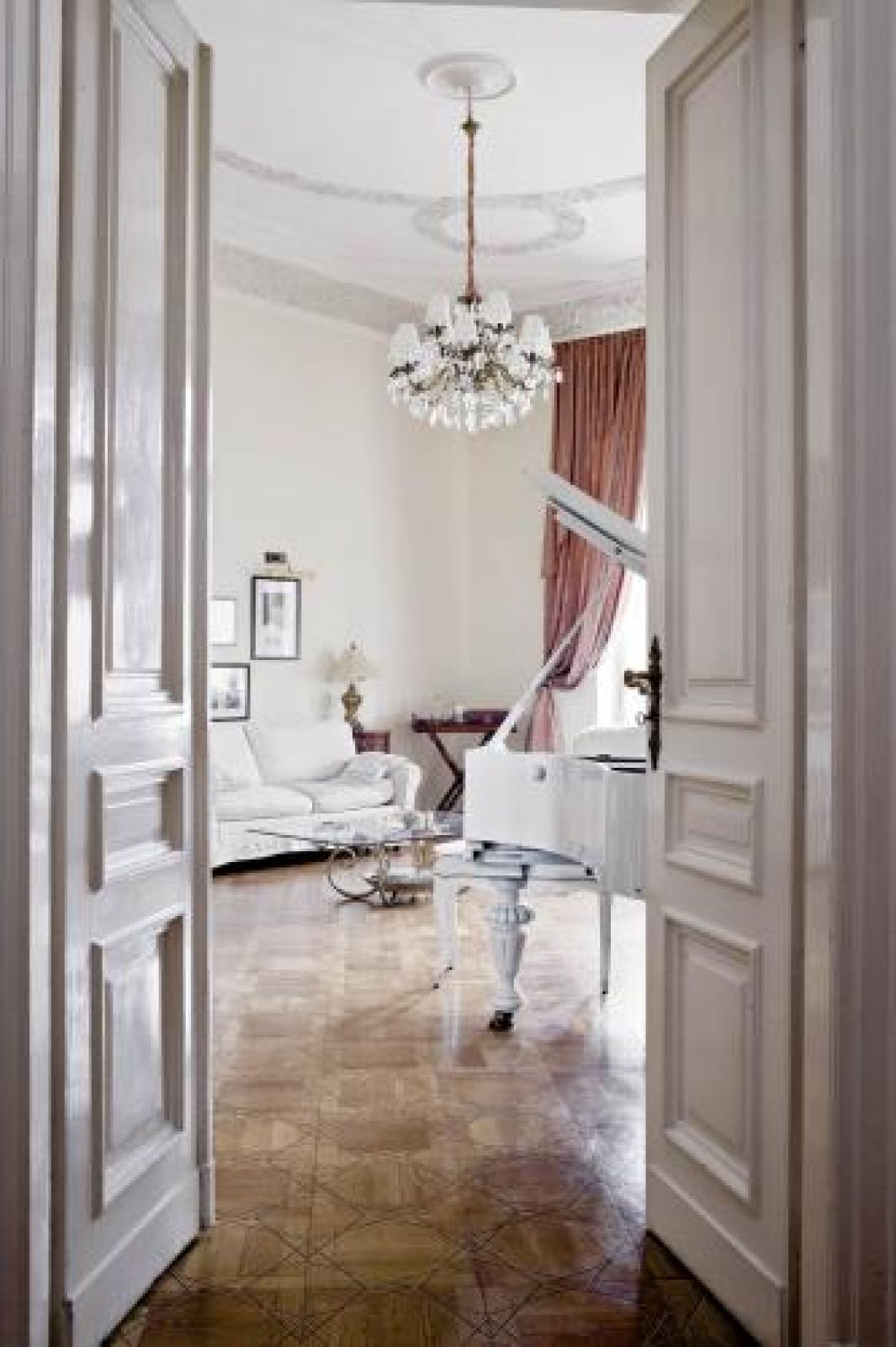 Chociaż mieszkanie wymagało solidnego remontu, wprowadziła się natychmiast. Z córką Heleną zamieszkały w jadalni, a resztę pokoi oddały w ręce ekipy budowlanej. Najtrudniej było odrestaurować drewniane podłogi. Miejscami uszkodzona mozaika wymagała uzupełnienia i odpowiednio starego drewna. Ale opłaciło się czekać prawie dziewięć miesięcy. W tym czasie wertowała książki, albumy z wnętrzami z epoki. Mieszczański styl przełamała jasnymi kolorami, by choć tak nawiązać do ukochanej Prowansji. – Biel wydawała się zbyt prostacka dla zabytkowych przestrzeni – tłumaczy Ewa.