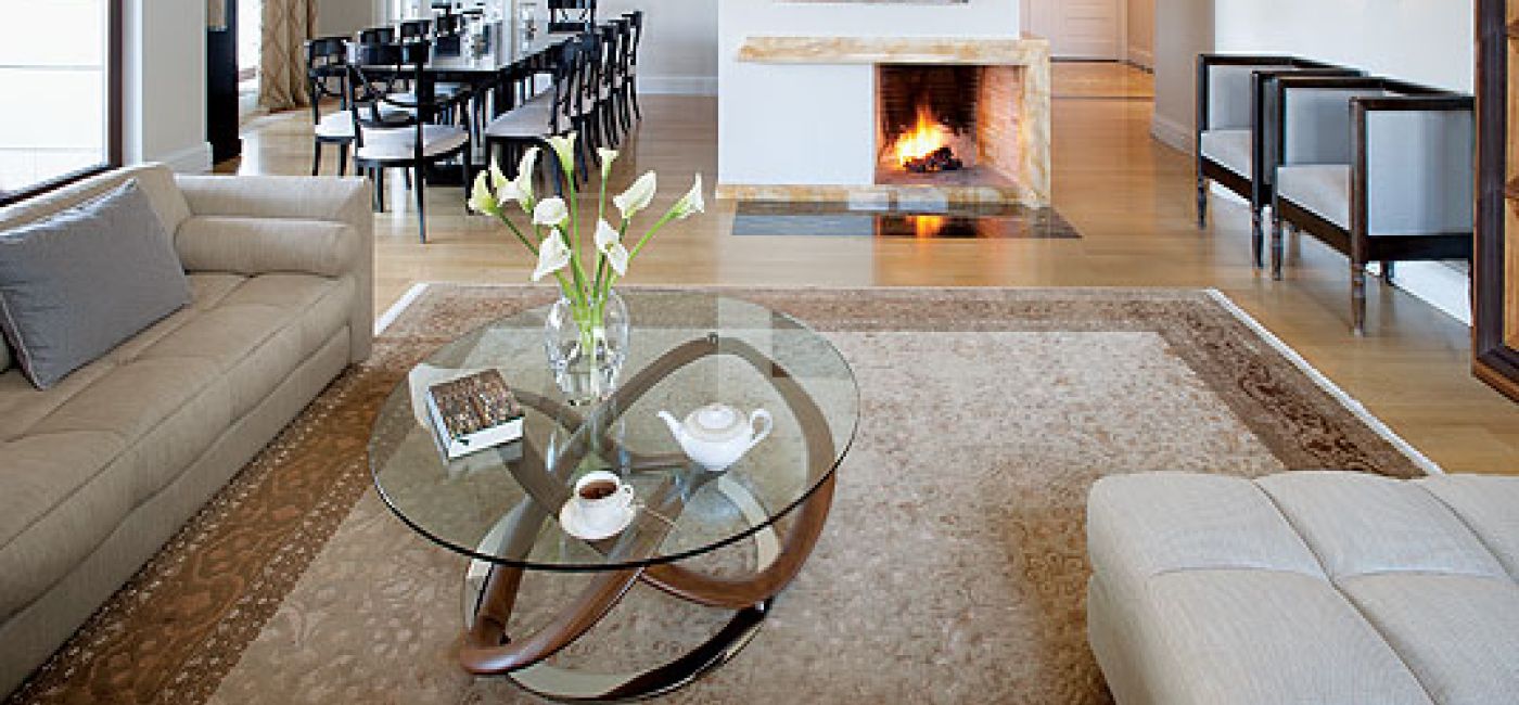 W salonie postanowiła trochę zamieszać. Dla ożywienia atmosfery zaproponowała stolik od Porady na pokręconej nodze z włoskiego orzecha i olbrzymie okrągłe lustro z nieregularnymi krawędziami (ponad półtora metra średnicy). Zabawnym kwadratowym fotelom oraz stylizowanej sofie Anna chciała dodać blasku, więc zamówiła w firmie Flos kinkiety jak połówki lamp. I tu pojawił się problem. Trzeba było na nie czekać aż trzy miesiące. Tymczasem pan Marek postanowił „urwać” jeden tydzień i przyspieszył termin oddania domu. Zamiast gwiazdki – 17 grudnia, bo wtedy wraca do Warszawy żona, a on chciałby przywieźć ją z lotniska właśnie tutaj!