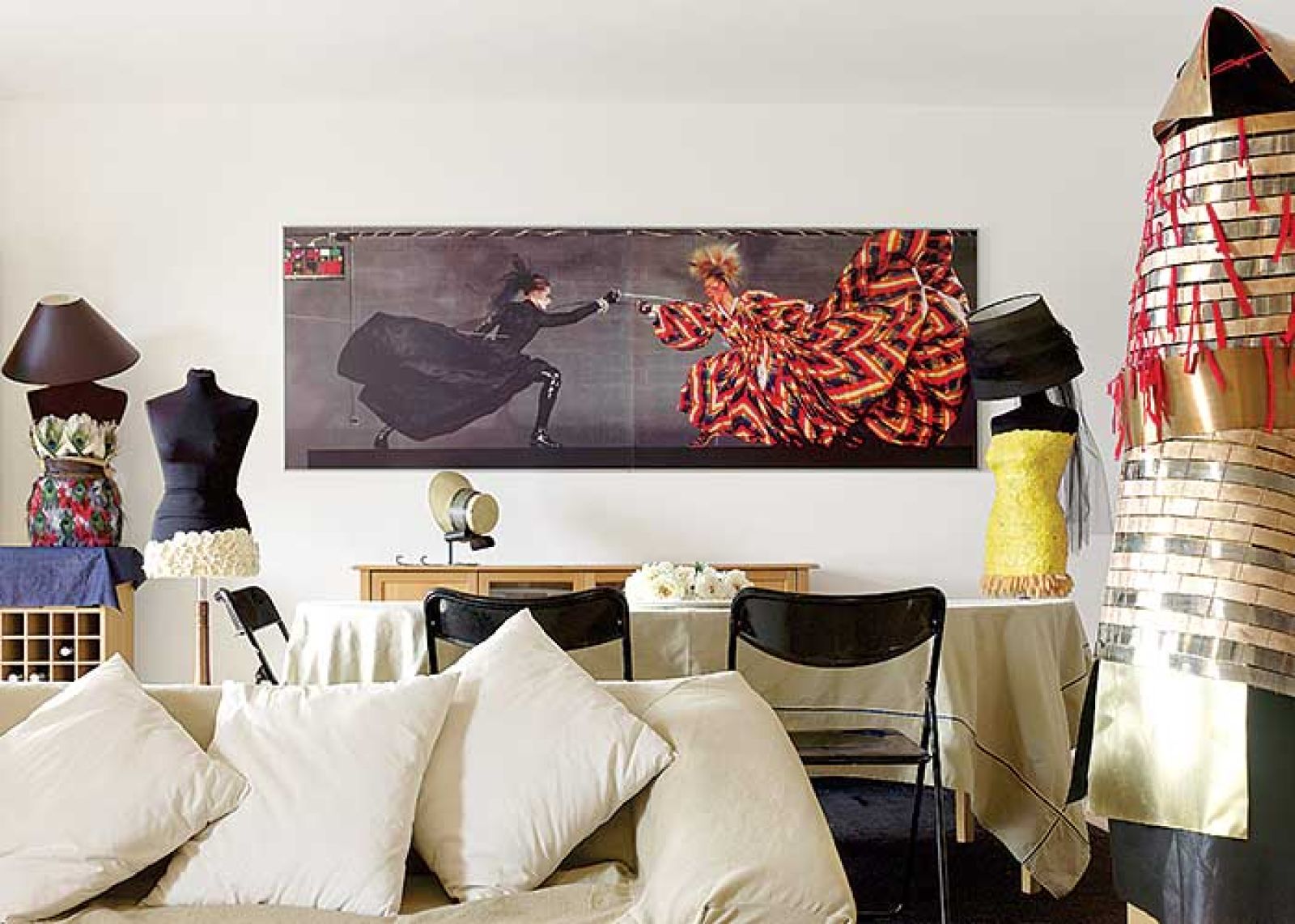 Ściany jej domu zdobią prace słynnego francuskiego fotografika Jean-Paula Goude’a, który tworzy plakaty dla Galerii La Fayette. Aż roi się tu od kobiet: damy w czarnych pelerynach walczą na szpady, stateczne na co dzień panie finiszują na mecie z wysoko zadartymi spódnicami, a dziewczyna w czerwonym gorsecie siłuje się z krnąbrnym psem... Trochę zwariowane, z przymrużeniem oka, jak manekiny Magdy.