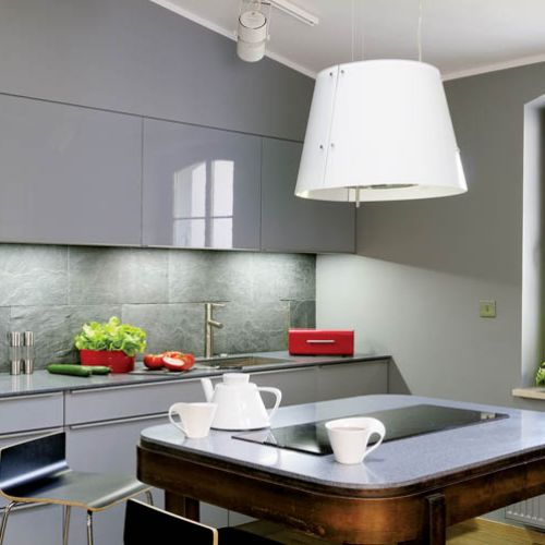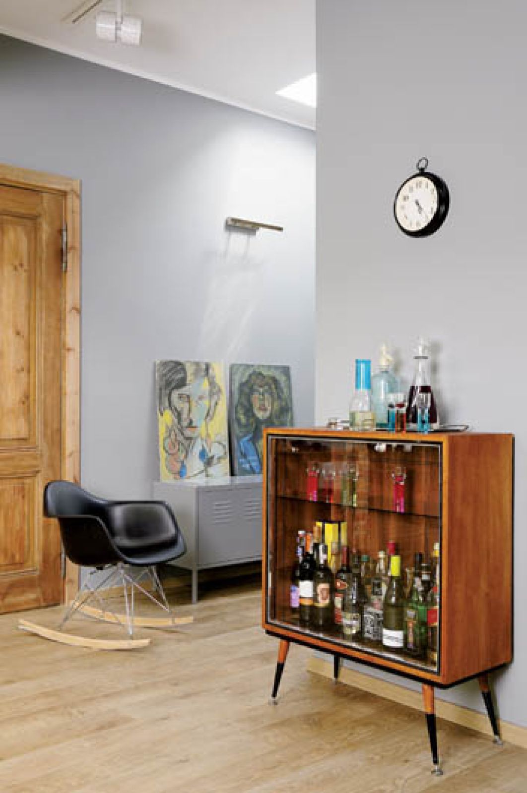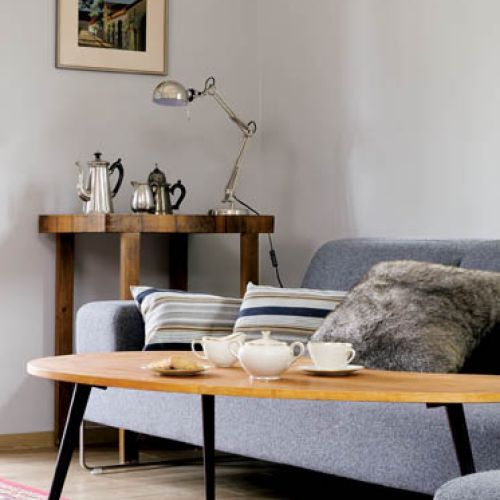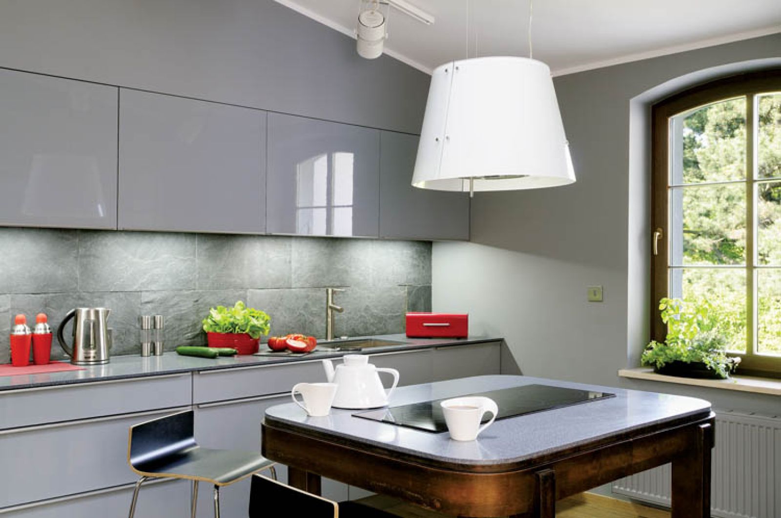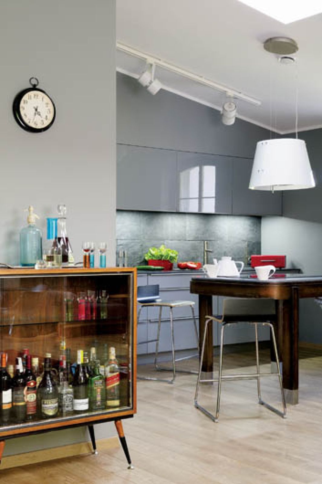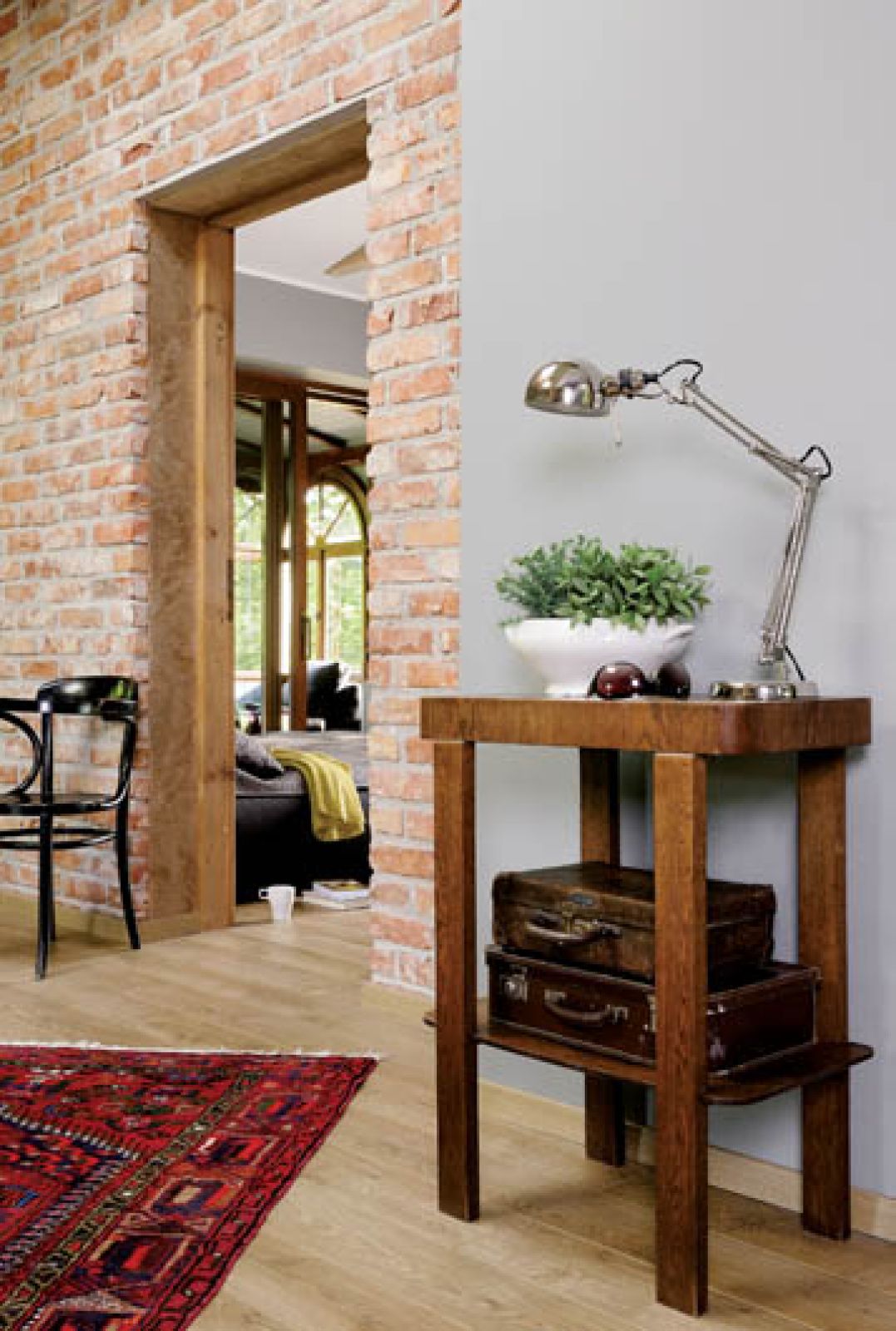 Zmienili podłogi i ocieplili ściany. Na jednej ułożyli cegłę. – Oryginalna się nie nadawała, więc kupiliśmy taką z rozbiórki starego domu w Gdańsku. Trzeba było poprzecinać ją na pół, by pod ciężarem nie runęły stropy. Murarze mocowali potem cegły na metalowe kotwy – tłumaczy Magda. Urządzaniem zajęła się sama. – Część mebli gromadziłam już wtedy, gdy o posiadaniu domu dopiero marzyłam. Wyszukałam na Allegro kilka rodzynków w stylu art déco, fotele z lat 50. i 60. czy stolik-jamnik, bardzo rzadki wzór – wspomina. Odwiedzając targi staroci, zaprzyjaźniła się z pewnym antykwariuszem. W jego magazynie znalazła piękny stół ze zniszczonym blatem, z którego ktoś zrobił sobie deskę do prasowania. Przeczekał kilka lat w piwnicy, a że pomysłowości Magdzie nigdy nie brakowało, w nowym domu posłużył za wyspę do gotowania. W jednej z nóg wywiercili dziurę i przeciągnęli siłę z prądem, a w miejscu blatu zamontowali płytę grzewczą. Zamiast klasycznego wyciągu znaleźli taki ukryty w lampie.