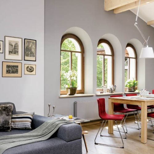 Magda i Marcin lubią wnętrza minimalistyczne, ale i eklektyczne, bo się nie starzeją i pozwalają na dostawianie różnych mebli i drobiazgów. W domu najpiękniejszą dekoracją są wielkie okna. – Zastępują nam obrazy. O każdej porze roku mamy inny widok i nastrój w mieszkaniu – cieszy się właścicielka. – Latem zagląda soczysta zieleń drzew, jesienią wszystko jest w czerwonożółtych kolorach. Zimą wpada chłodne światło. W ten sposób każdej pory roku doświadczamy w bardzo zmysłowy sposób – opowiada.
