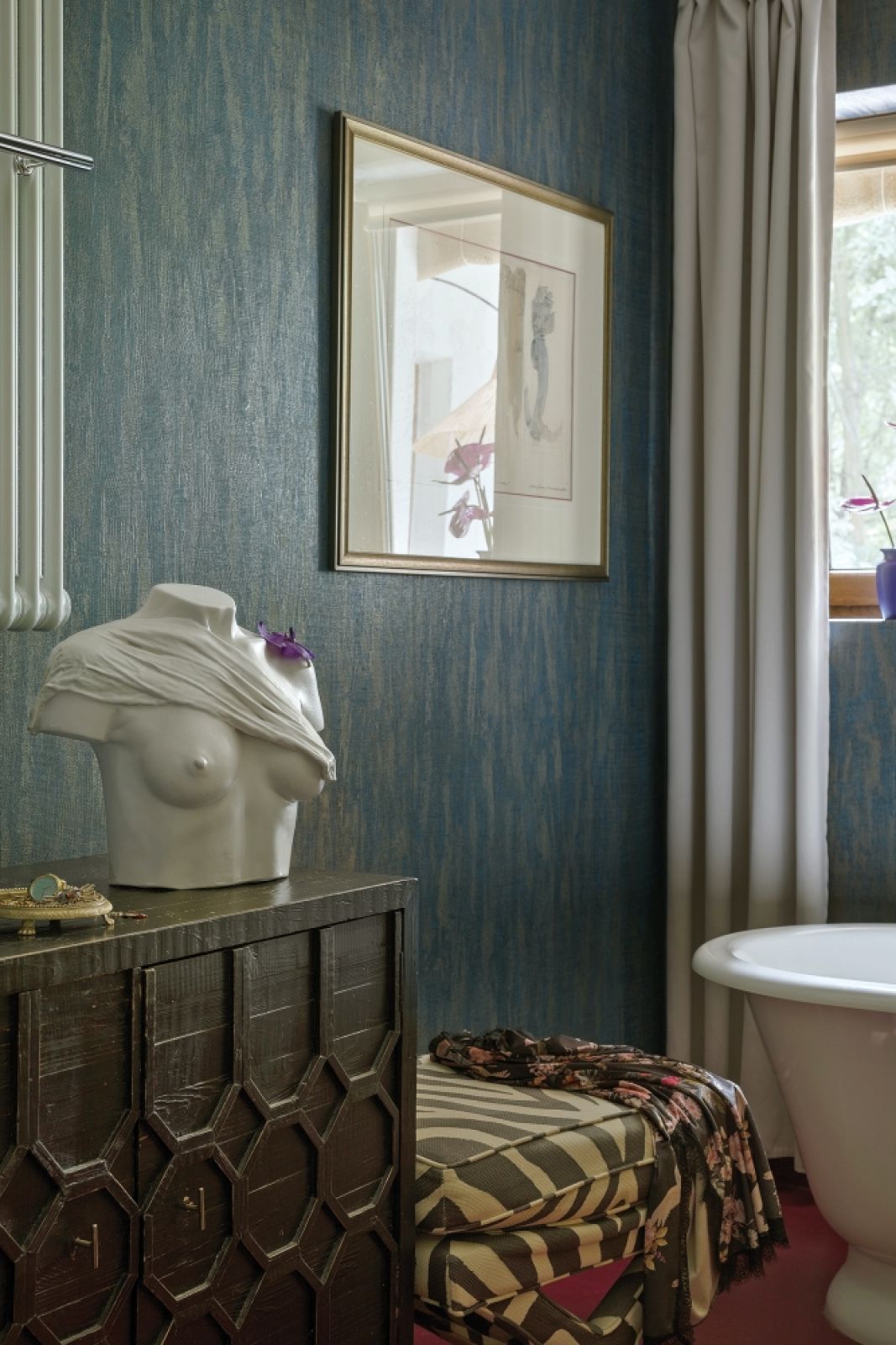 Stylowe i przytulneKamila uwielbia mieszać style i nie boi się nadmiaru kolorów oraz form we wnętrzach. – Jestem maksymalistką eklektyczną – śmieje się. – Jeżdżę po świecie i zakochuję się w różnych przedmiotach. W jej salonie żyrandol ze szkła murano spotyka się ze skórzanym szezlongiem z lat 80., a francuskie tapety w łazience z azjatycką komodą.