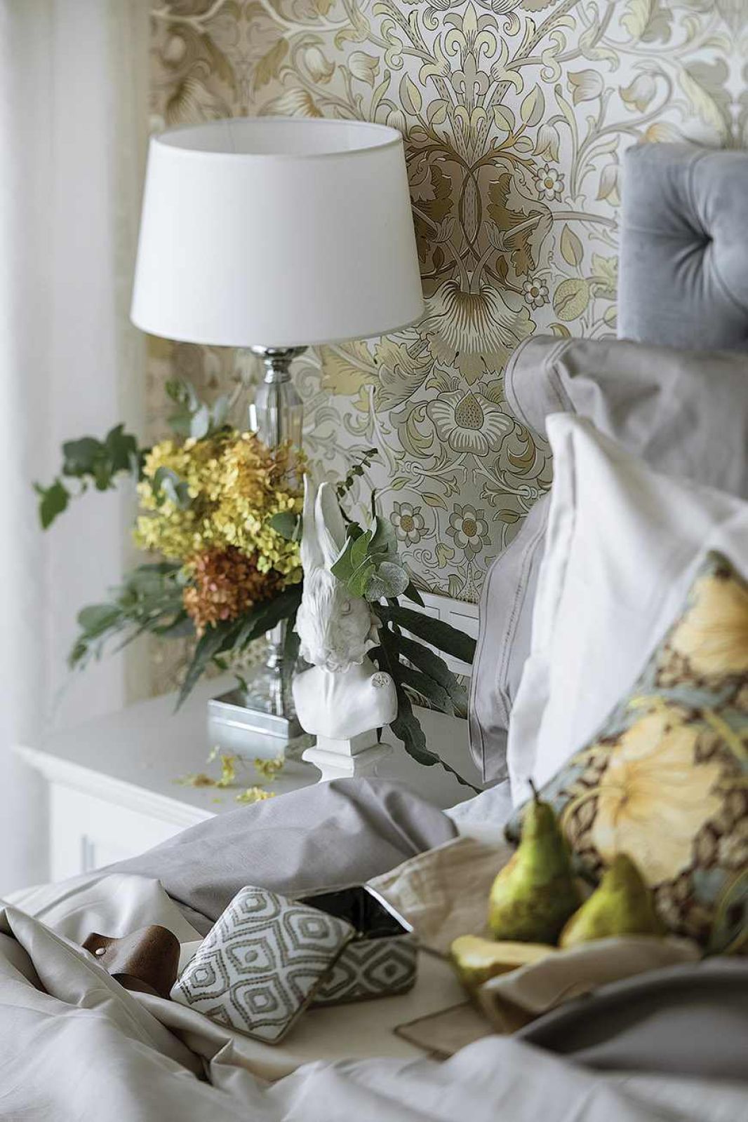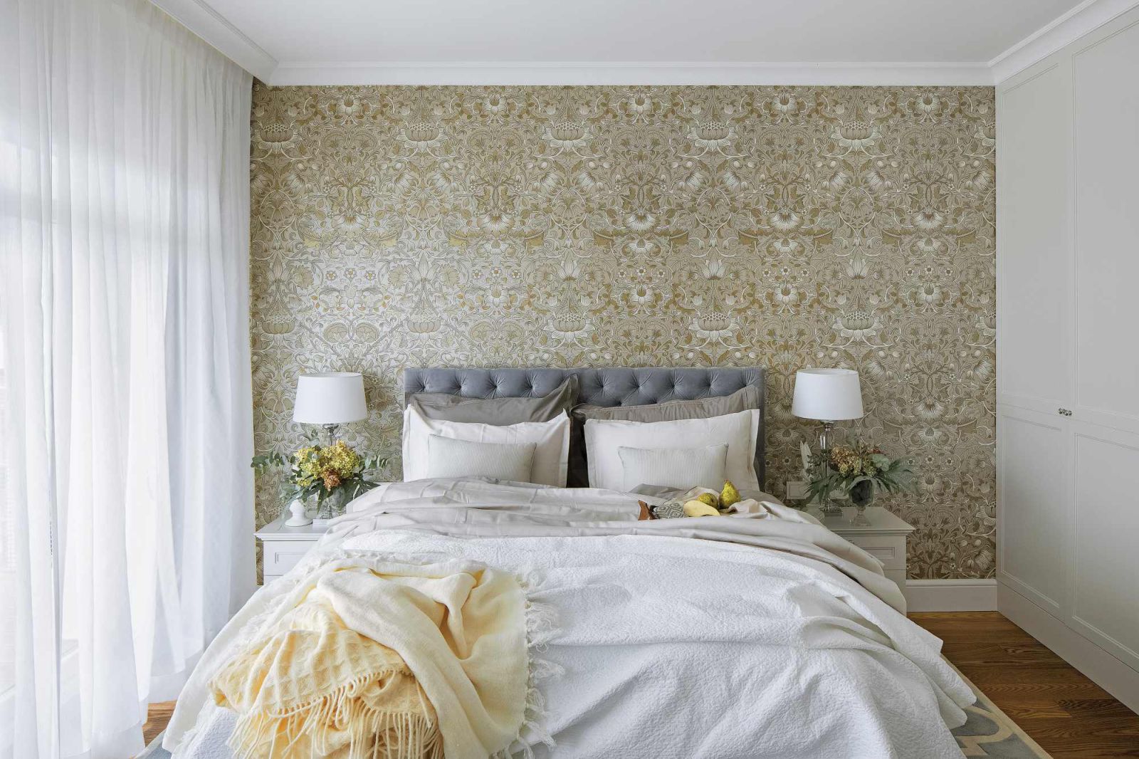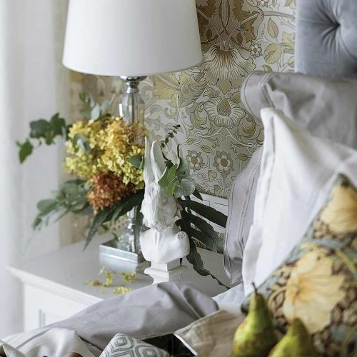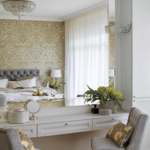 Z kolei tapetę do sypialni wymarzył sobie pan domu. Miała być dokładnie taka, jaką miał główny bohater fimu „50 twarzy Greya” – w delikatny wzór z kwiatami i ptakami na złoconym tle. Architektka odnalazła ją nawet w Stanach Zjednoczonych, okazało się jednak, że musieliby czekać na nią kilka miesięcy, więc ostatecznie zdecydowali się na inną.