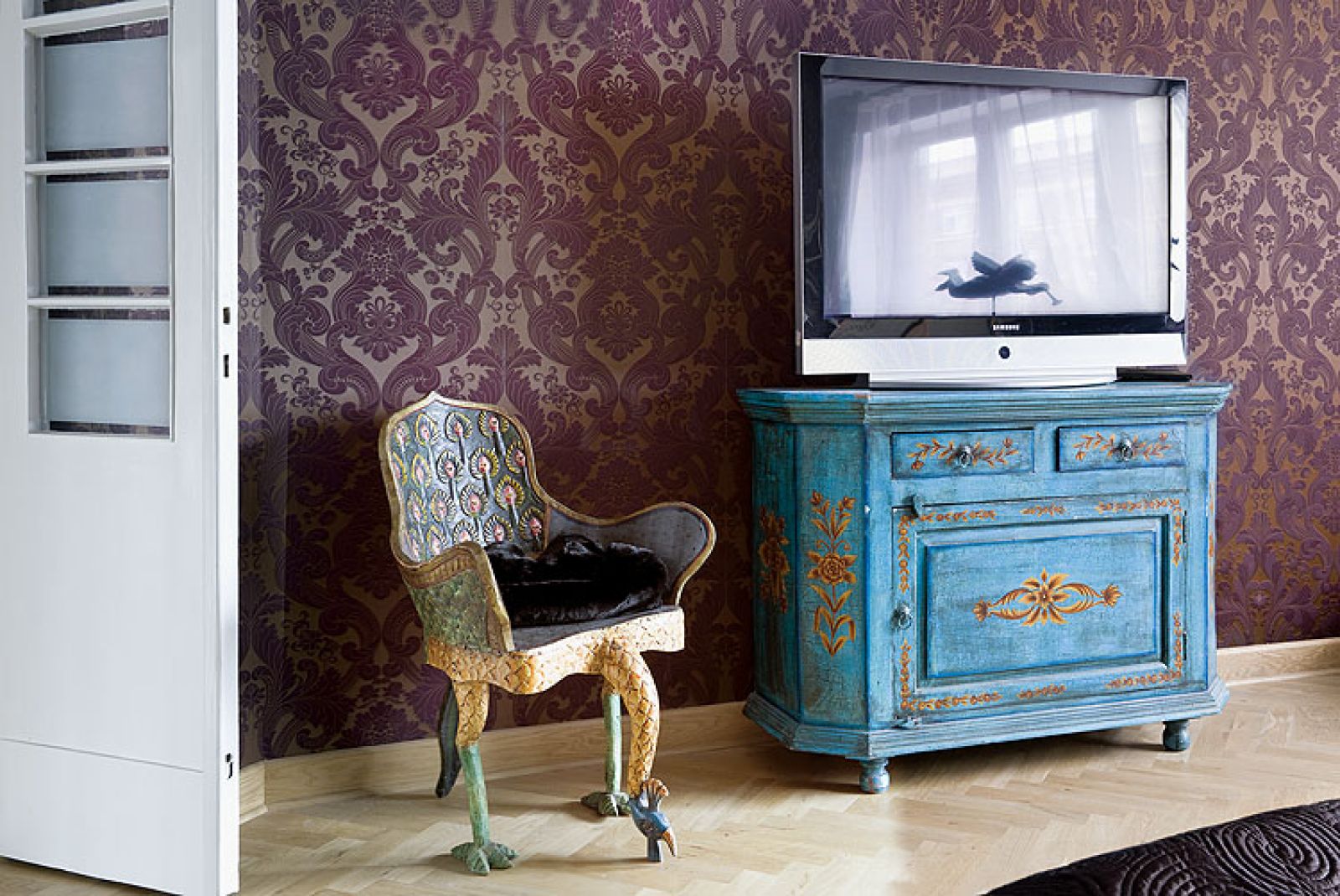 Meble przywędrowały tu z… Czyśćca. – Mamy taki domek pod lasem – opowiada Anna. – Tam wszystko, czego nie chcemy wyrzucić, czeka na swoje drugie życie. Anna trochę się tej czyśćcowej zbieraniny bała – że będzie bałagan, że każda rzecz z innej parafii. Ale Dorota obiecała, że jakoś to pożenią. I tak błękitna kolonialna komoda trafiła do sypialni jako szafka pod telewizor. Obraz wujka Anny, który zabierała z sobą do kolejnych mieszkań, wisi teraz w salonie.
