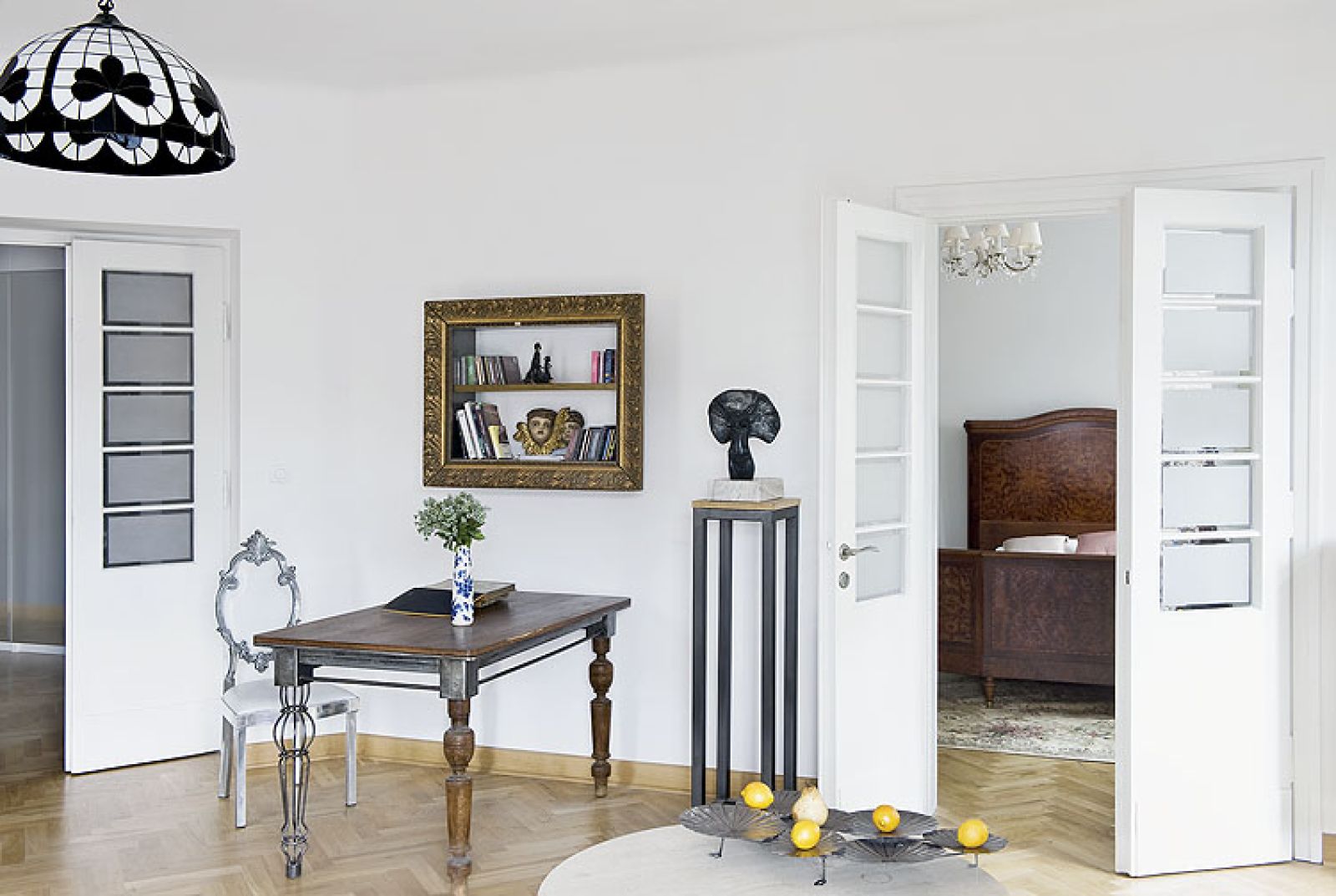 Żeby zachować ducha domu z dawnych czasów, trochę rzeczy dokupiły na Kole: łóżko, szafę. Starannie odnowione zostały wszystkie przedwojenne drzwi. Na podłodze była dębowa klepka. Stara, skrzypiąca. Fachowcy ocenili: nic z tego nie będzie, trzeba zdzierać. Okazało się, że legary były spróchniałe, ale klepka zdrowa. Pod nią leżały gazety z lat 30. Idealnie zachowane, można było je sobie poczytać.