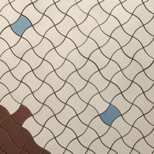 W tej części mieszkania udało się zachować stary strop z belkami – został pomalowany na biało, by nie dominował w kuchni, a tworzył spójną całość ze ścianami. Kolorystycznym akcentem są zgromadzone przez lata obrazy i grafiki, oraz... gorseciki na podłodze, które pięknie wpisują się w klimat tego miejsca. Współcześnie robione idealnie odwzorowują modernistyczny charakter dawnej mozaiki.