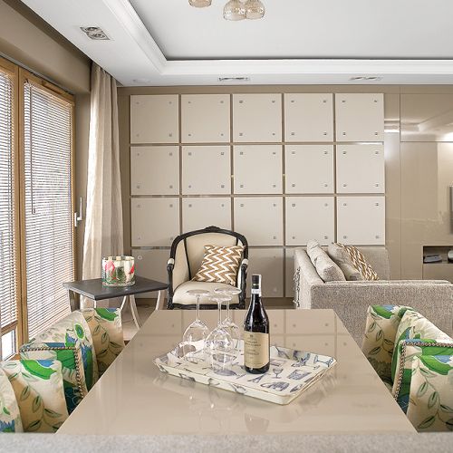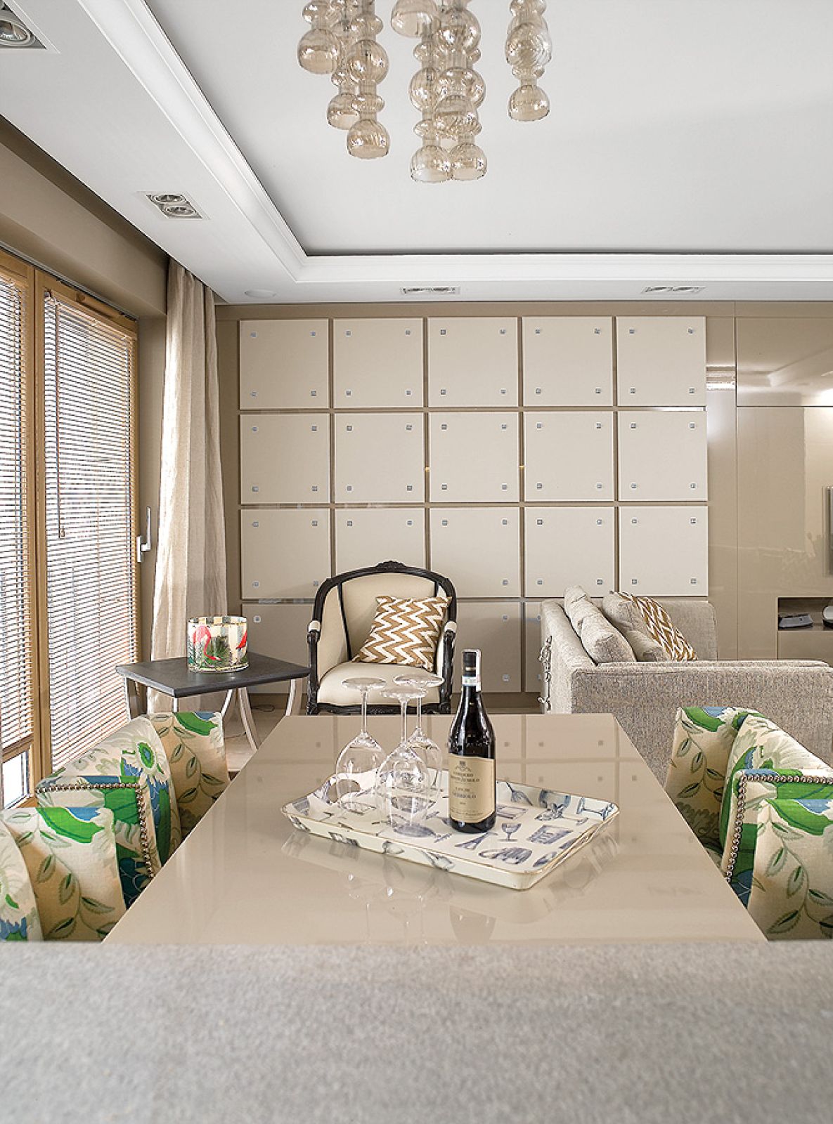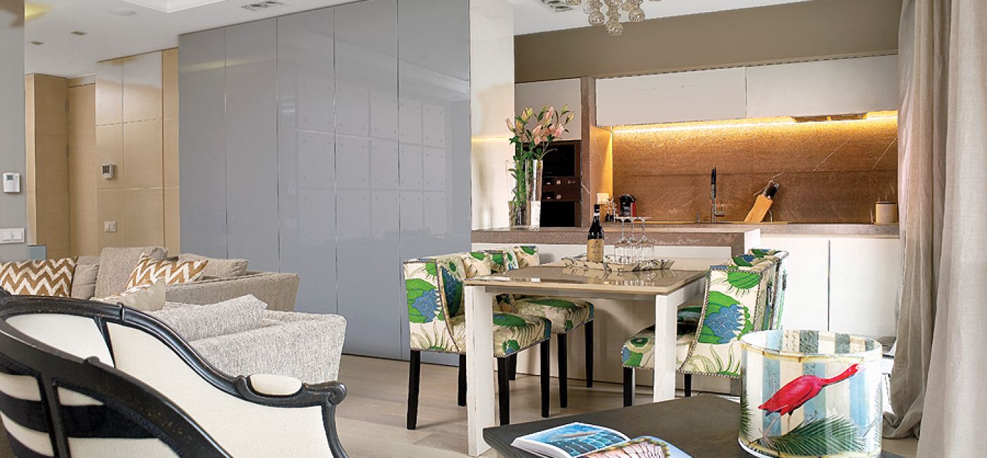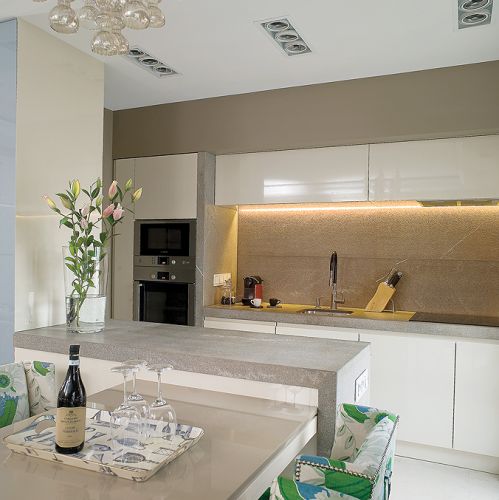 Jesień podpowiedziała pomysł. – Mam fioła na punkcie kolorów, a ciekawych zestawień szukam często w przyrodzie. Był październik, pochmurny dzień. Na drzewach gdzieniegdzie jeszcze migotały zielone liście, ale świat powoli brązowiał – wspomina. Barwy tego pejzażu tak jej się spodobały, że przeniosła je do swojego mieszkania, które akurat urządzała: beże ocieplone zieloną tkaniną na krzesłach i morskim kilimem z angielskiego pchlego targu (haftowany jedwab z Iranu z połowy XIX wieku). Materiały? Też dopasowane do polskiego surowego krajobrazu – lny i futrzana narzuta, dębowy parkiet i chłodny marmur w kuchni.