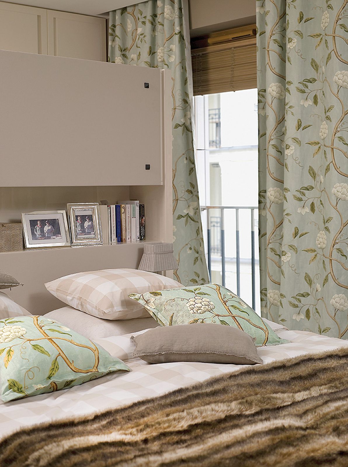 Kiedyś Maria Boccuni urządzała domy na bogato, dziś jest bardziej oszczędna. Została jej za to słabość do tkanin. Tym razem na ścianie powiesiła stuletni irański jedwab.