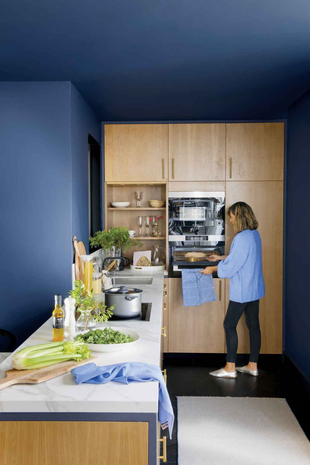 Tymczasem to świetne towarzystwo dla klasycznej (choć położonej na nowo) olejowanej podłogi w jodełkę, którą mamy w pokojach, i pięknych, barwnych kafli w holu (firmy Acocsa, wypatrzyłam je kiedyś na targach designu i marzyłam, żeby mieć w domu). A także do nowoczesnej zabudowy kuchni i półwyspu z metalu i drewna, z marmurowym blatem. No i do kolorów.