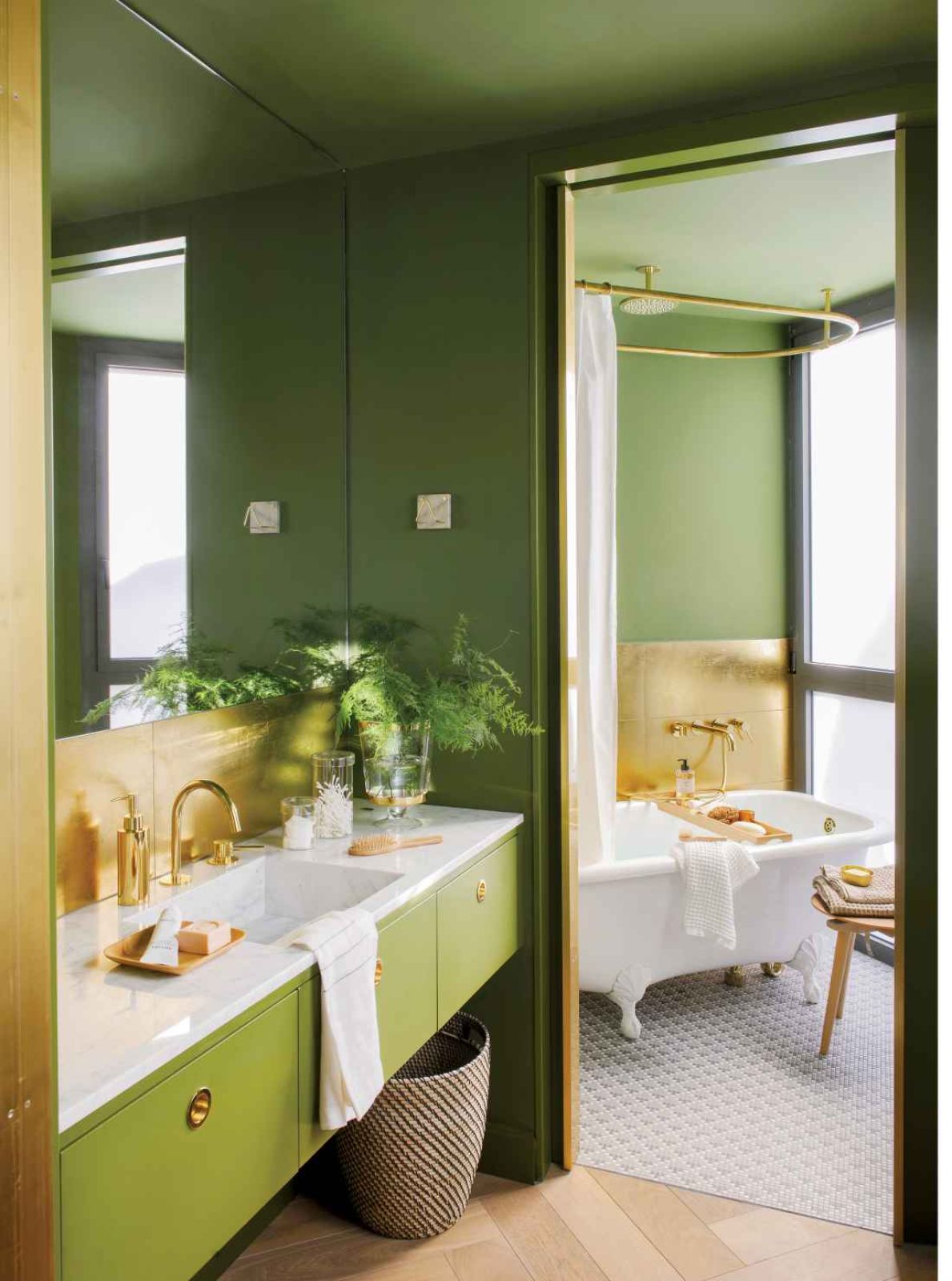 Żeby mieszkanie zachowało swój elegancki charakter, Miriam zaproponowała klasyczne listwy i sztukaterie, a w łazience złote płytki, które przypominają drogocenną boazerię. Złoto to zresztą motyw, który przewija się dyskretnie w całym apartamencie – w lampach, uchwytach mebli i dodatkach. Muszę przyznać, że nas zachwycił, choć na początku wydawał się pomysłem raczej pałacowym.