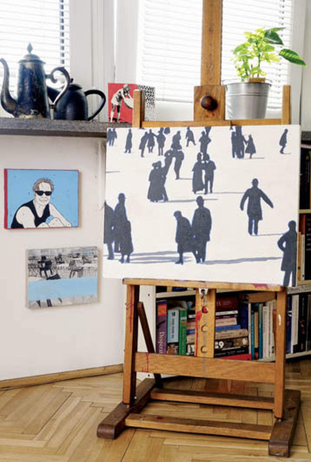 Obrazy, które darzy sentymentem, trafiają do domowej galerii, na piętrze nad Milano. Tak w mieszkaniu z widokiem na most Poniatowskiego powstała prywatna kolekcja Eli i Martina van Dijków (mąż porzucił dla Eli Hagę), a w niej dwieście dzieł sztuki. Powaga miesza się tu z żartem, wyrafinowany design – ze świadomie użytym kiczem, rzeczy firmowe i kosztowne – z groszowymi. Ela kojarzy więc plastikowego wściekle czerwonego kundla (produkcja masowa) z ekspresyjnym, białym kotopsem Sylwestra Ambroziaka, a na krzesło znanego projektanta rzuca poduszkę ozdobioną szydełkowymi kwiatkami.