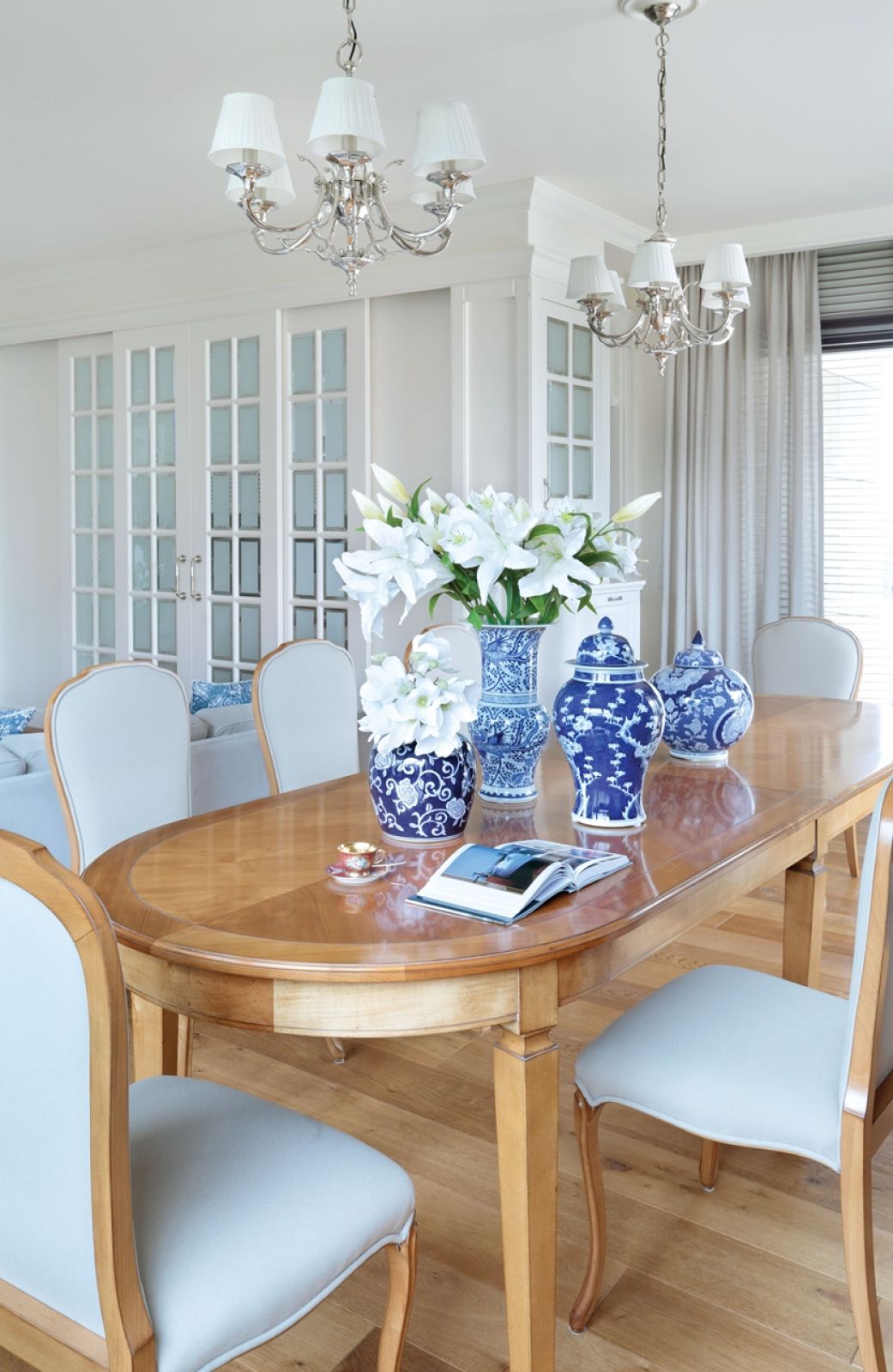 Najtrudniejsze okazało się nazwanie tego, co im się podoba. Słowa klucze wrzucali do internetu i oglądali setki zdjęć. – Poprzednie domy wynajmowaliśmy w pełni umeblowane – opowiada właścicielka. – Dzięki temu wiedzieliśmy na pewno, czego nie chcemy. W Kazachstanie miałam na przykład w kuchni czarny kamienny blat na wysoki połysk. „Nigdy więcej” – powiedziałam. Styl nowoczesny też nie był nasz. Na bogato? Nie. Najbardziej podobały nam się jasne wnętrza, lekka klasyka, doskonałej jakości wykończenie.