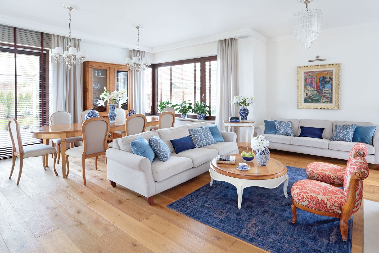 Zdjęciom, które oboje wybierali, najbliżej było do amerykańskiego stylu Hampton. Mieszkali także w Stanach, więc widzieli sporo takich wnętrz w oryginale. Ona dodatkowo podkreślała, że musi być praktycznie, bo mają dwoje dzieci i dwa psy.