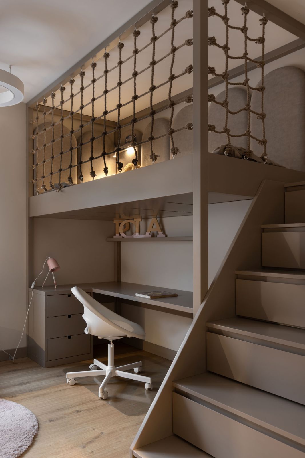 W łazience dzieci z kolei znalazła się kolumna prysznicowa i bateria umywalkowa z kolekcji Arnika od Deante Design Studio – odporna na odciski palców, o ergonomicznym kształcie, idealna do codziennego użytkowania przez małych domowników.