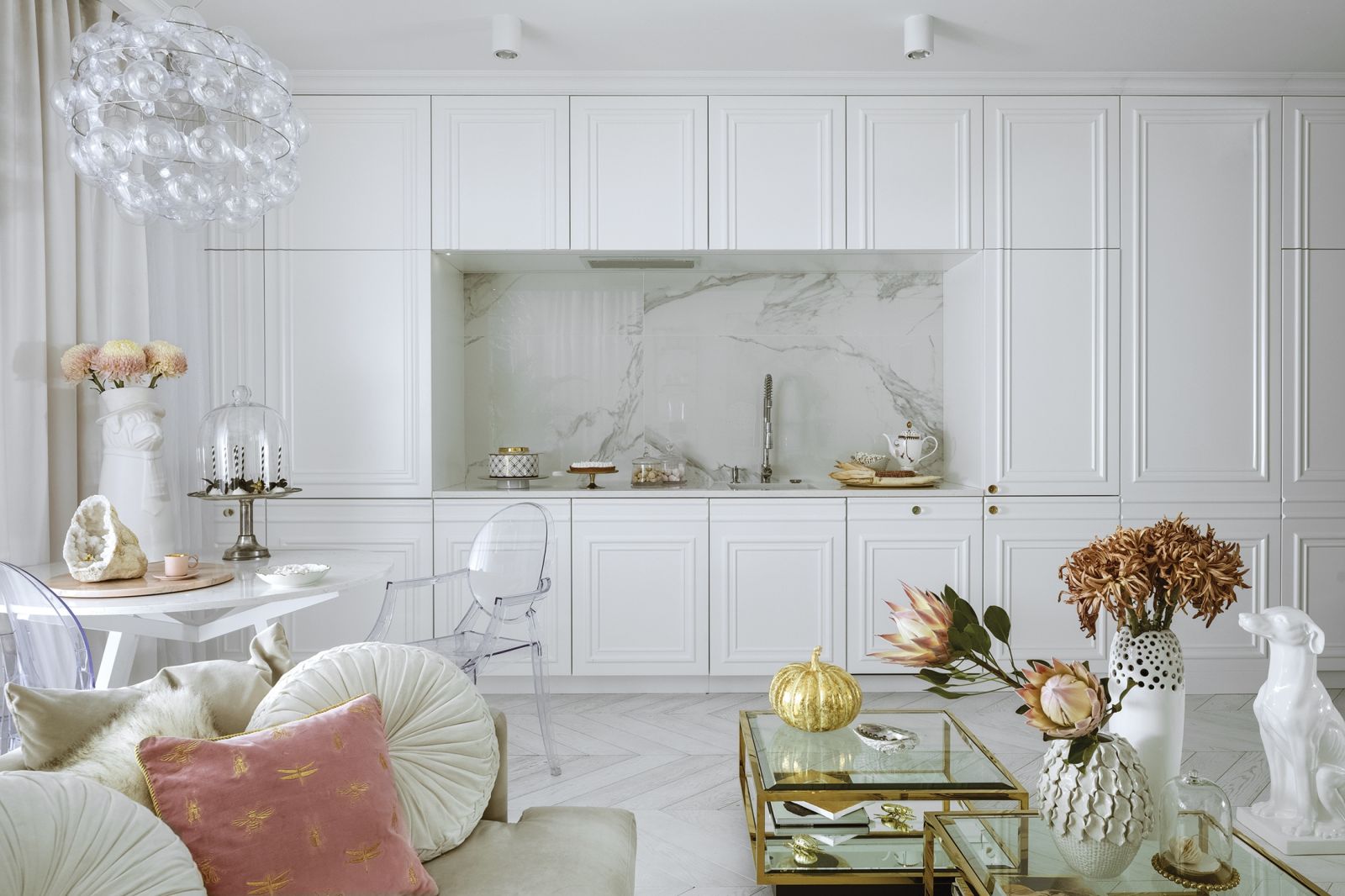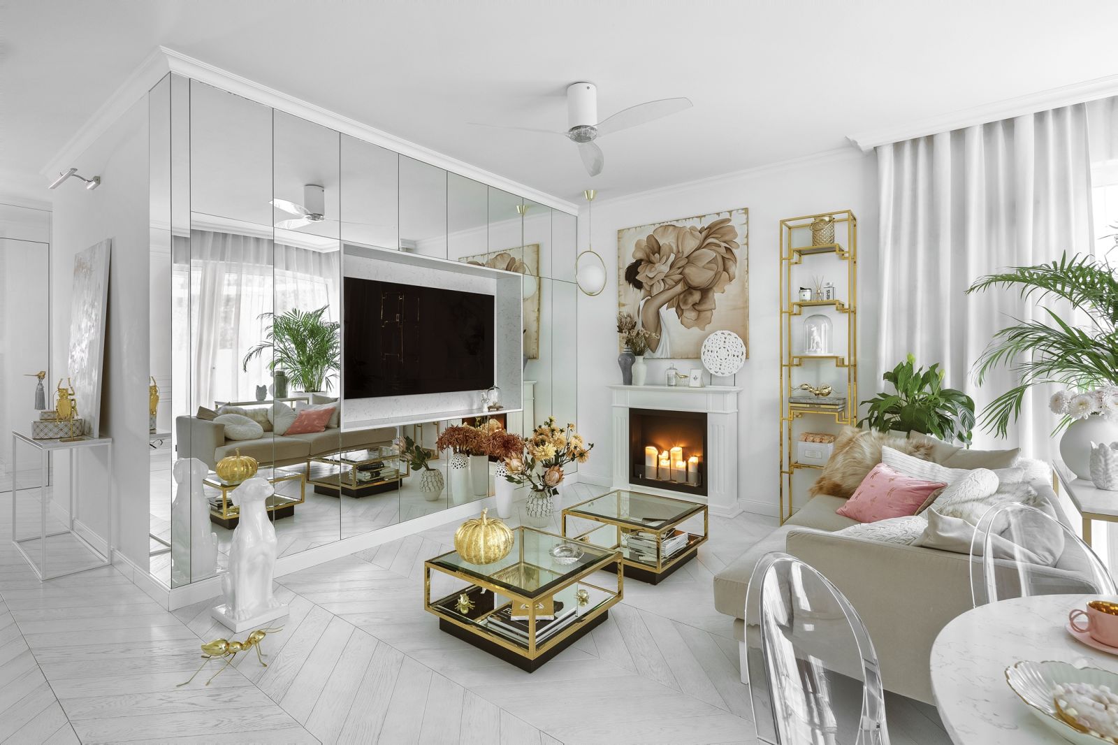 Apartament Klaudii Halejcio – styl glamour w bieli i złocie