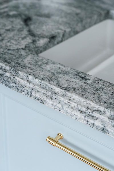 – Wnętrze miało być przytulne, eleganckie i dojrzałe, z akcentem na detale i smaczki – opowiada Emilia. Są więc nawiązania do historii samej kamienicy i gdyńskiego modernizmu: gzymsy, zasłony, grzejniki w stylu retro, czarna bordiura na podłodze, kamienne blaty w kuchni czy porcelanowe przełączniki do światła. Liczne schowki w domu pozwalają zachować porządek we wnętrzu, ukryć rzeczy i przez to zbliżają wnętrze do minimalizmu, którego miłośnikiem jest Maciej. Widać (a raczej nie widać) to szczególnie w kuchni, gdzie zabudowa została specjalnie zaprojektowana, by pomieść konkretne sprzęty czy naczynia, na przykład krajalnicę do chleba.