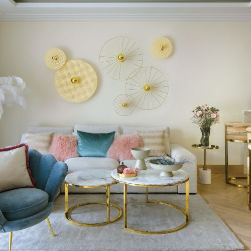 Natalia: Wiedziałam, czego chcę, ale nie miałam szczegółowego planu. Mieszkanie miało być jasne, nawet w pochmurne dni, w klasycznych kolorach, które nie wychodzą z mody: bielach i beżach, przełamanych turkusem i odrobiną różu. No i ze złotymi akcentami, bo śmieję się, że złota nigdy za dużo.