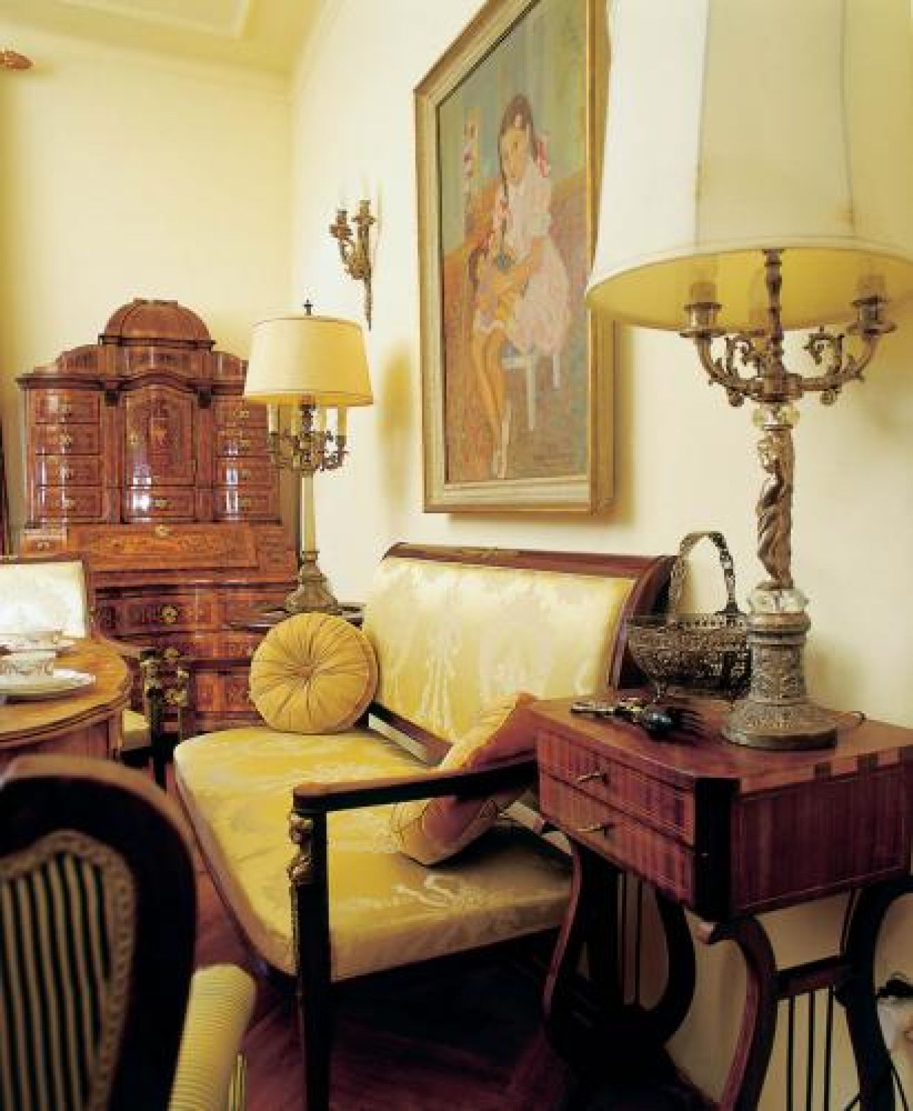 Jego klimat tworzy oryginalna sekretera w stylu niemieckiego baroku z systemem schowków, komoda, którą zdobi stary, ale nadal punktualny zegar o ludwikowskich motywach i tarczy jak kula ziemska. Empirowe fotele i kanapa – prezent od mamy – zmieniły tapicerkę, a ścianę nad kanapą ozdobił portret ośmioletniej Ewy z czasów dzieciństwa w Szczawnicy Zdroju. To ważny obraz, przypomina o wizycie Jerzego Waldorffa, który namówił rodziców, by rozwijali talenty artystyczne córki. Tak rozpoczęła się jej długa edukacja w Warszawie, w szkole baletowej, uwieńczona karierą estradową i teatralną.