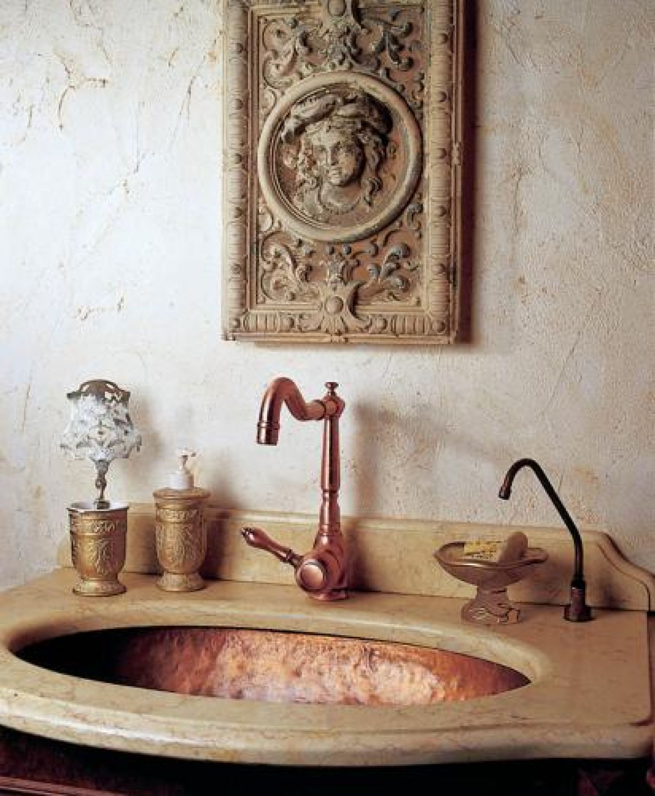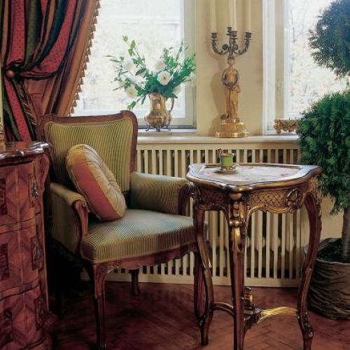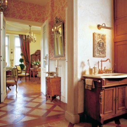 Jeszcze inna jest łazienka w kolorze zszarzałego różu, wyłożona jasnym trawertynem Botticino i Rosso Verona, z wymarzoną wanną na nóżkach i rzymskimi kolumnami. Różnorodność stylów, które widać w tym mieszkaniu, współgra ze sobą znakomicie. Jednak to nie koniec dzieła. Już zaczynają się dyskusje nad rozbudową biblioteki.
