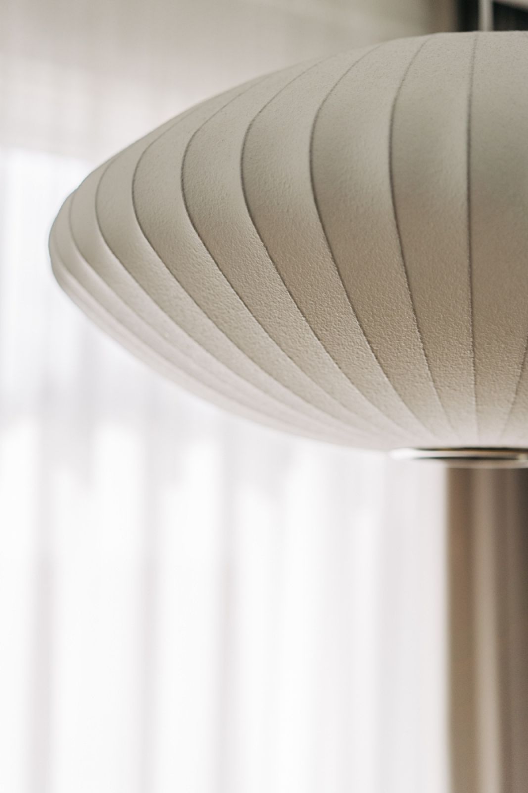 Nad blatem wyspy kuchennej projektantka powiesiła designerską lampę ze szklanych kul, które niczym kiść owoców na gałązce dodają kuchennej aranżacji smaku. Od strony salonu stanęły przy wyspie hokery z drewna w miodowym kolorze, które wnoszą tu element przytulności. To ulubione miejsce właścicielki – rano celebruje tu wspólne śniadania z synami, wieczorami kolacje z przyjaciółmi.