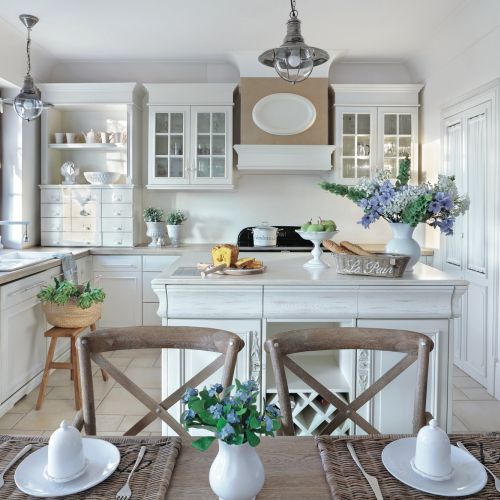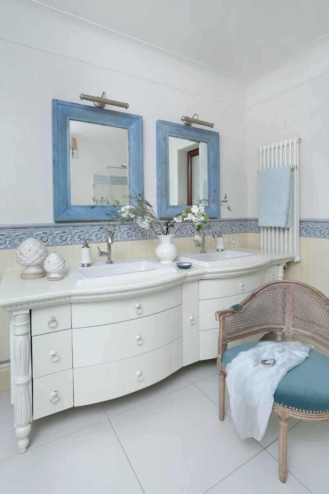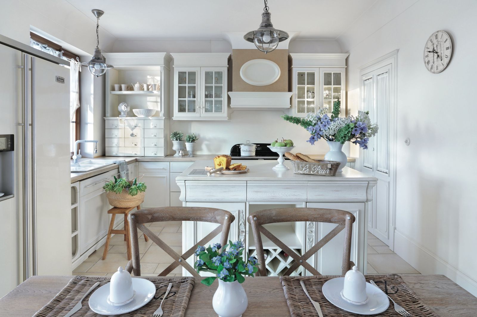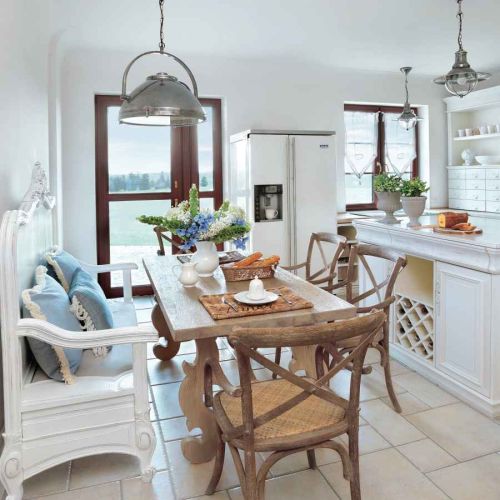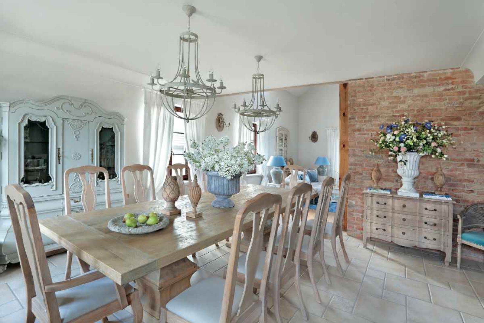 Ten dom miał być artystyczną kreacją. Właściciele, wspaniali ludzie, dali mi mnóstwo swobody. Na dodatek mieli odwagę. Bo kto w dzisiejszych czasach w eleganckim salonie pozwoli sobie na nieotynkowany kominek – na nagie, chropowate cegły jak w jakimś zakładzie hutniczym?! A ja uwielbiam takie kontrasty – z jednej strony formy stylowe, zakręcone, a z drugiej nieokrzesane. Wybrałam meble z rzeźbionymi ramami i frontami, ale muśnięte bielą. Podłogi chcieliśmy dopasować kolorystycznie do płytek. Dębowe deski zostały wybarwione, lekko postarzone i woskowane.