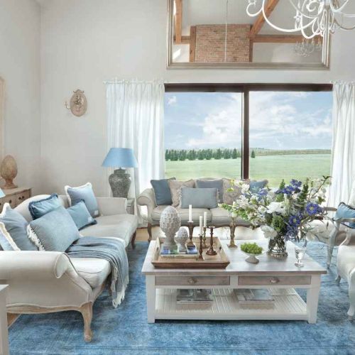 W kolorze o formie kluczowy jest błękit zaproponowany przez duet – Kasię Sawicką i Anetę Tryczyńską. Pięknie gra z bielonymi drewnianymi meblami i surową cegłą. Gospodarze nie zlękli się też zwiewnych, dynamicznych form. Tak zamaszystą linię schodów mogą mieć tylko ludzie z fantazją.