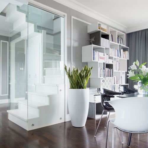 TiM Grey zaproponowali lekką, finezyjną klatkę schodową obudowaną szkłem. I wygrali. Dalej też czekało ich niełatwe zadanie: pogodzenie francuskich klimatów ze skandynawskimi i... czeskimi. Na szczęście wnętrza klasycyzujące z delikatną nutką nowoczesności to ich specjalność. – Miało też być ciut glamour, ale nie za bardzo, bo mam dom otwarty, znajomych, którzy wpadają na śniadania i nie chciałam nikogo odstraszyć stylizacją – dodaje właścicielka.