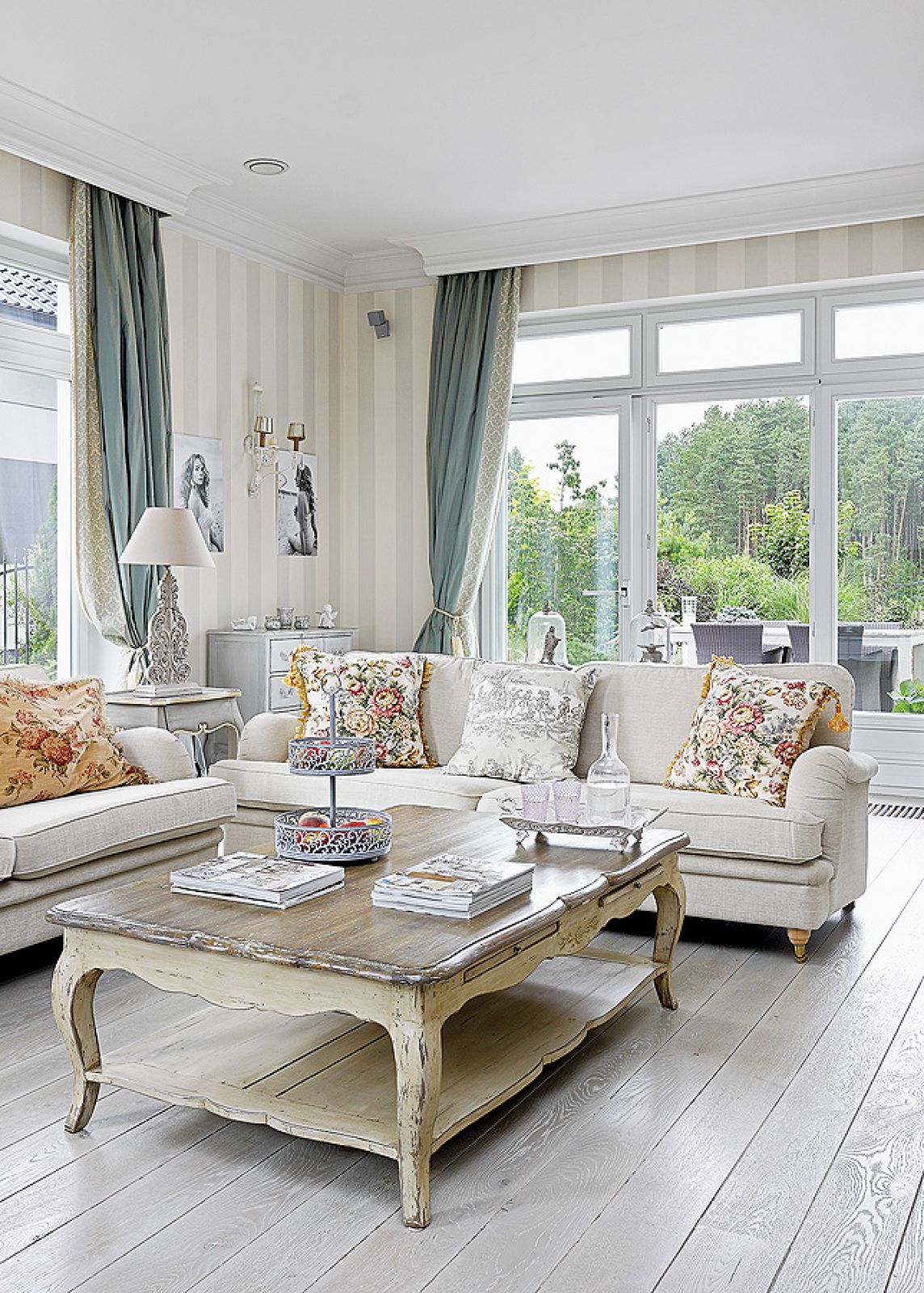 Dookoła mają las, Arek codziennie rano może więc biegać w pięknych okolicznościach przyrody, a Magda przyjmuje gości: często do ogrodu zagląda sarna z młodymi, w zimie na ogrodzeniu wieszają dla niej jabłka. Niedaleko jest też najwyższy punkt Gdyni – góra Donas (nieco ponad 205 m n.p.m.) – z wieżą widokową. Ponieważ ma charakterystyczną ażurową konstrukcję, nazywają ją swoją wieżą Eiffla. No i nie bez powodu, bo francuskie klimaty są im bliskie (choć Arek bardziej woli Włochy, gdzie często bywają u rodziny). Na ścianach zobaczymy więc francuskie kolory, jasne z przewagą gołębich szarości, z Francji przyjechała też większość mebli – poza kuchennymi, łazienkowymi i zrobionym na zamówienie dębowym, przecieranym stołem w jadalni.