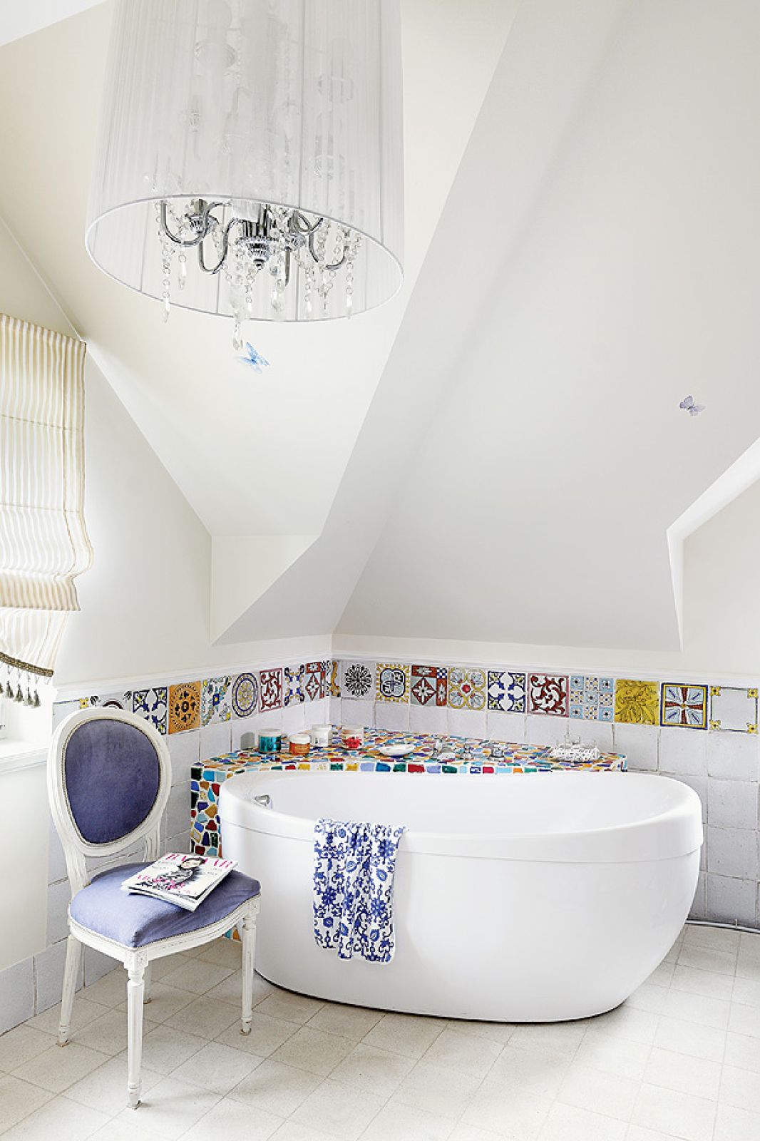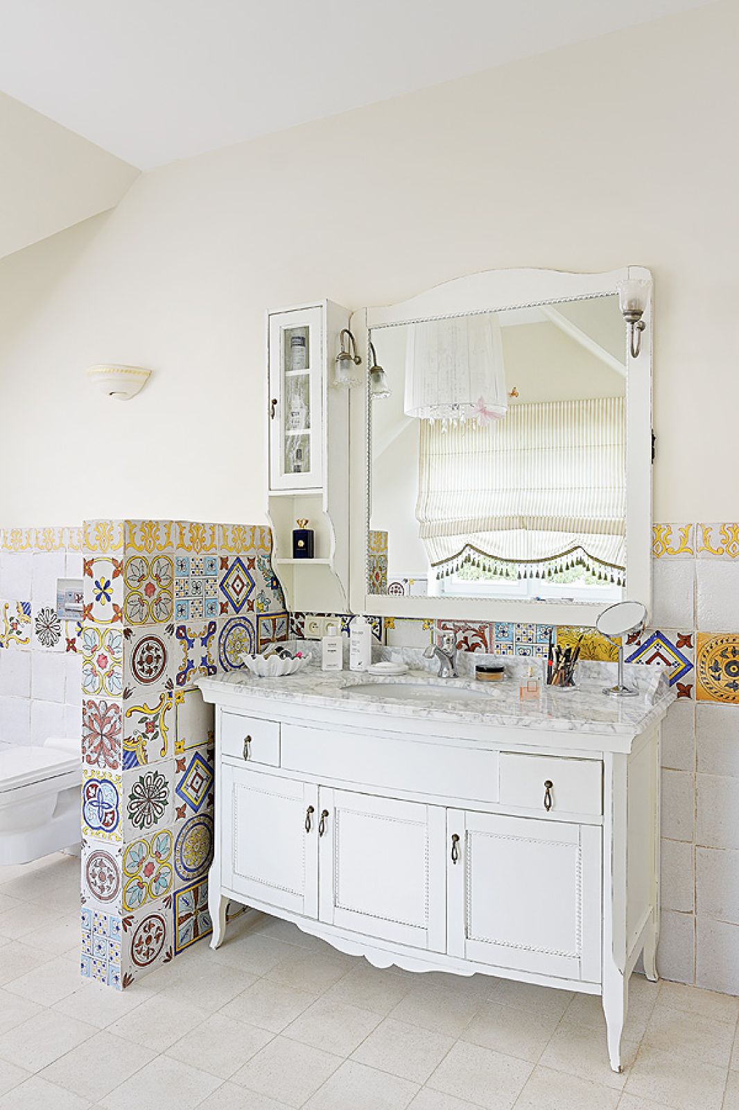 Uwagę zwracają też ściany w salonie i holu wykończone płatkami srebra, prowansalskie malowidło z polem lawendy w łazience na parterze czy bajecznie kolorowe, włoskie płytki ceramiczne w łazience gospodarzy na piętrze. – Kiedyś odwiedziła mnie koleżanka, która dwanaście lat mieszkała w Prowansji. Gdy już wszystko obejrzała, powiedziała: „Czuję się jak w domu”. I to jest dla mnie najlepsza rekomendacja – mówi Magda.
