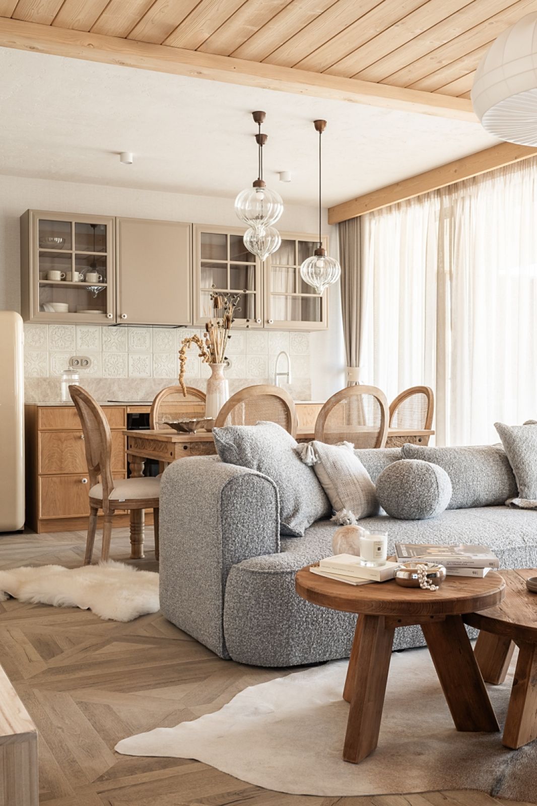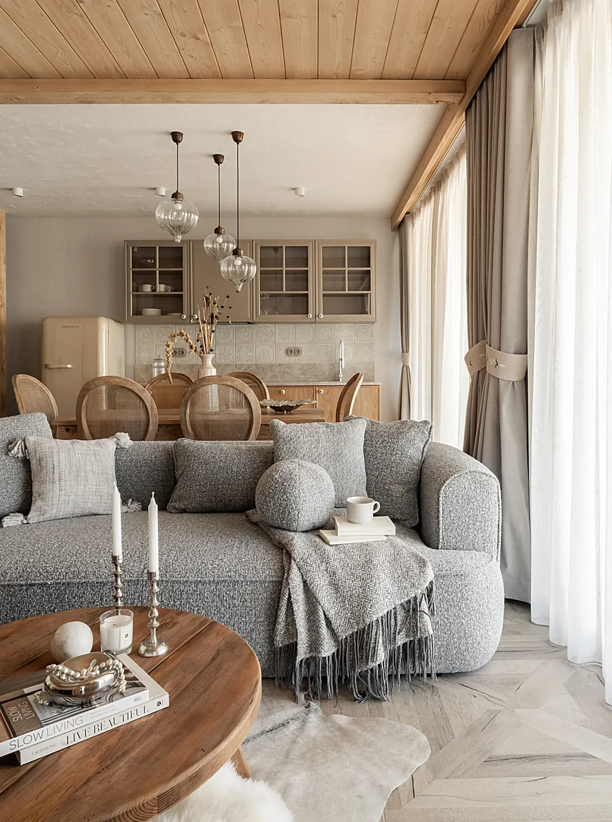 Kolorystyka górskiego wnętrza – beże, szarości i naturalne drewno