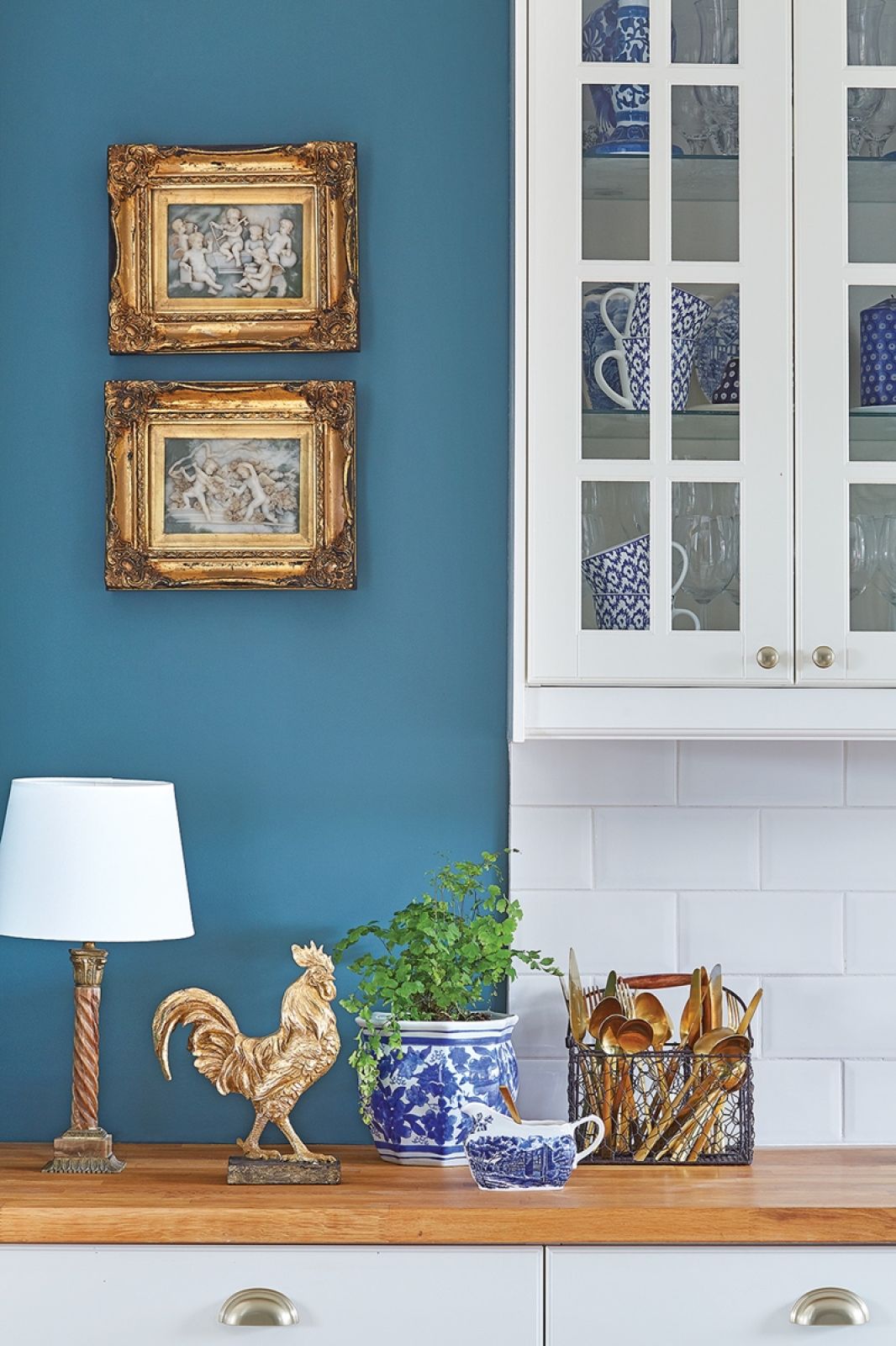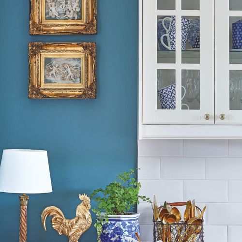 Choć gust ma klasyczny, parę miesięcy temu zatęskniła za odrobiną szaleństwa – spodobały jej się projekty Fornasettiego. Od męża dostała kolekcję talerzy do powieszenia na ścianie. Sama zaś kupiła tapetę ze wzorem inspirowanym Pałacem Dożów w Wenecji do sypialni i łazienki. – To chyba jedyne na czasie i designerskie rzeczy, na jakie się zdecydowałam – mówi. – Mam bowiem zasadę, że nie kieruję się modą. Wolę wyszukiwać przedmioty jedyne w swoim rodzaju, takie „moje”. Teraz moda mnie wprawdzie dogoniła, zarówno na niebieski, jak i styl hamptons, który pokochałam lata temu, ale przeczekam, trendy miną, a ja zostanę im wierna.