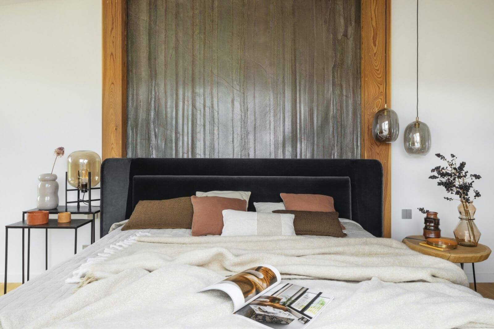 Dom miał być jednak nietuzinkowy, odległy od typowo góralskiej estetyki. Właścicielka lubi styl boho, ale też industrialny klimat. I jeszcze łączenie rzeczy nowych z vintage’owymi oraz wszelkie niestandardowe rozwiązania. Do tego ma słabość do naturalnych materiałów: drewna, kamienia, gliny, a nawet (niezbyt naturalnego) betonu. Zatem z zewnątrz to klasyczna architektura w stylu charakterystycznym dla górskich okolic, a w środku elegancja z odrobiną szaleństwa.