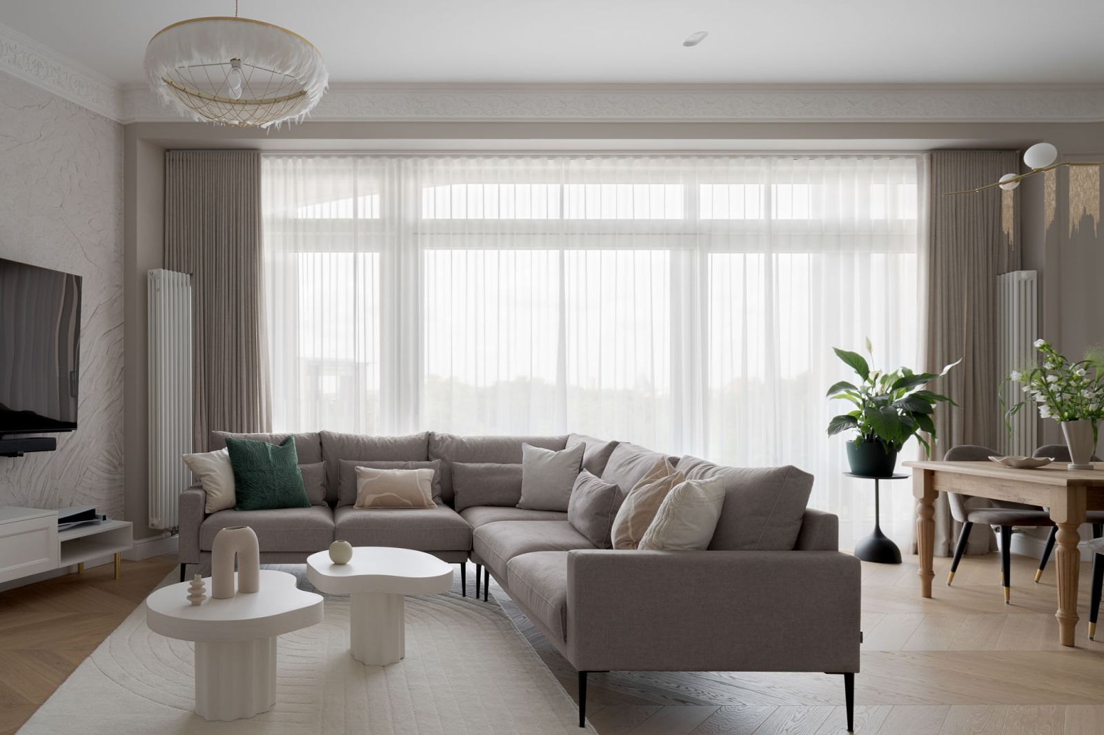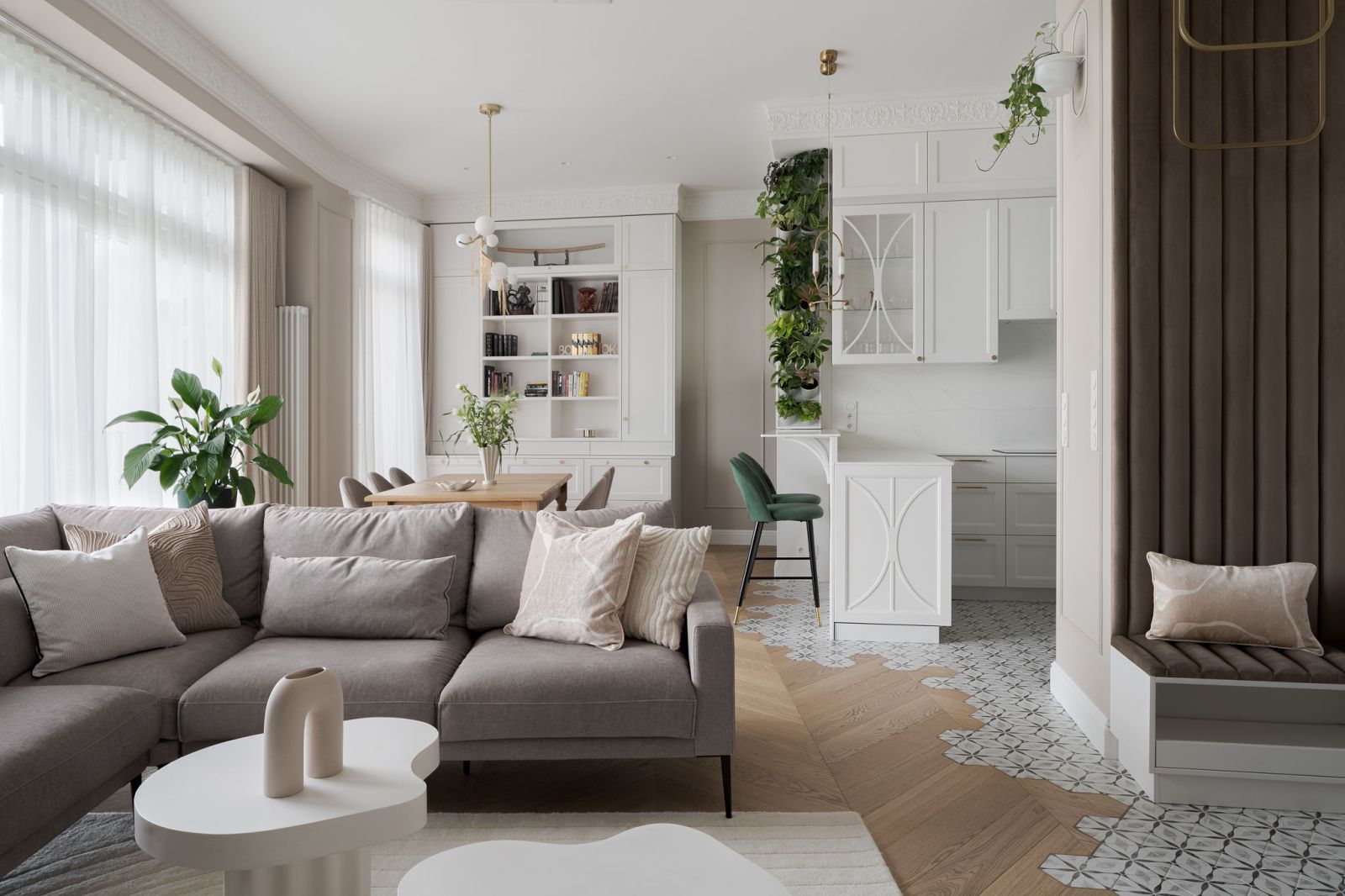 Z tym nie mieli problemu, bo trafili na specjalistkę od nietuzinkowych wnętrz. Marika Baczmańska zaproponowała wizję, która spodobała się całej trójce. Projekt wnętrz harmonijnie łączy inspiracje stylami hamptons, art déco oraz modern classic, tworząc przestrzeń jasną, przytulną i nowoczesną.