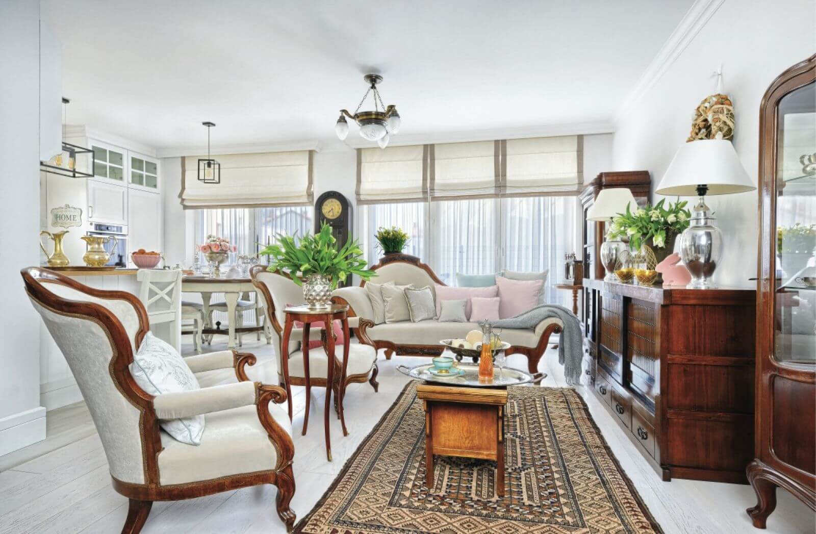 Rodzina pani Edyty miała szczęście – mieszkała w Katowicach w pięknej secesyjnej kamienicy. Ominęła ją wojenna zawierucha i wszystkie rodzinne pamiątki ocalały. Podobnie u jej teściów ze znamienitego rodu z warszawskiego Grochowa, większość zbiorów się zachowała. Po latach dawna sabotażystka antyków pokochała je i przenosi się z nimi do kolejnych mieszkań. Gdy więc kupiła nowy dom pod Warszawą, urządzenie go miała już w głowie. – Potrzebowała w zasadzie tylko nowej kuchni i, jak się wyraziła, „odpałowych łazienek” – mówi Bożena Kocój, która razem z synem Maciejem zajęła się projektem.