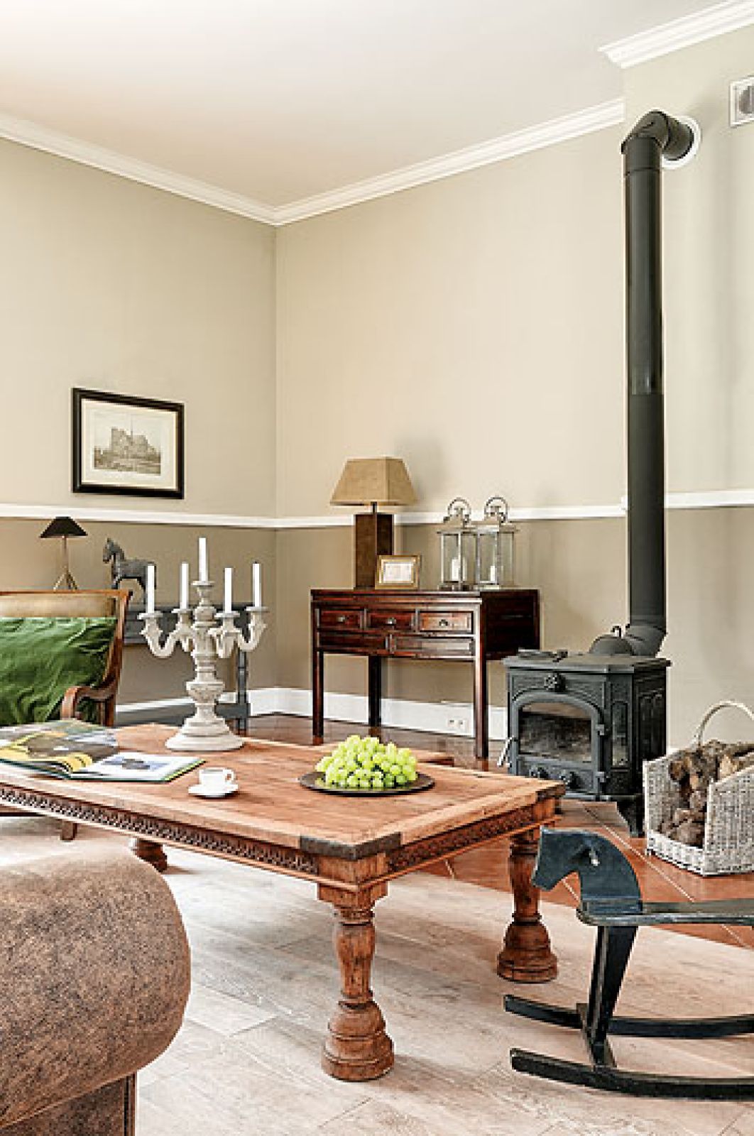 Powstał po to, żeby Paulina, Tomek i ich goście mieli gdzie się relaksować po turniejach polo (które organizują w założonym przez siebie Warsaw Polo Club). Dlatego sercem domu jest ponad 80-metrowy salon, z ogromną, wygodną do nieprzyzwoitości skórzaną kanapą (naprzeciwko, w małej żeliwnej kozie, przyjacielsko buzuje ogień, co tym bardziej utrudnia opuszczenie tego miejsca). Od początku było wiadomo, że ma tu być jak w klubie: styl starej Anglii, stonowane kolory, drewniane lamperie na ścianach, ciemna kanapa, nobliwa biblioteka z okazałym księgozbiorem – albumy o koniach, książki o grze w polo i kolekcja najlepszej beletrystyki.