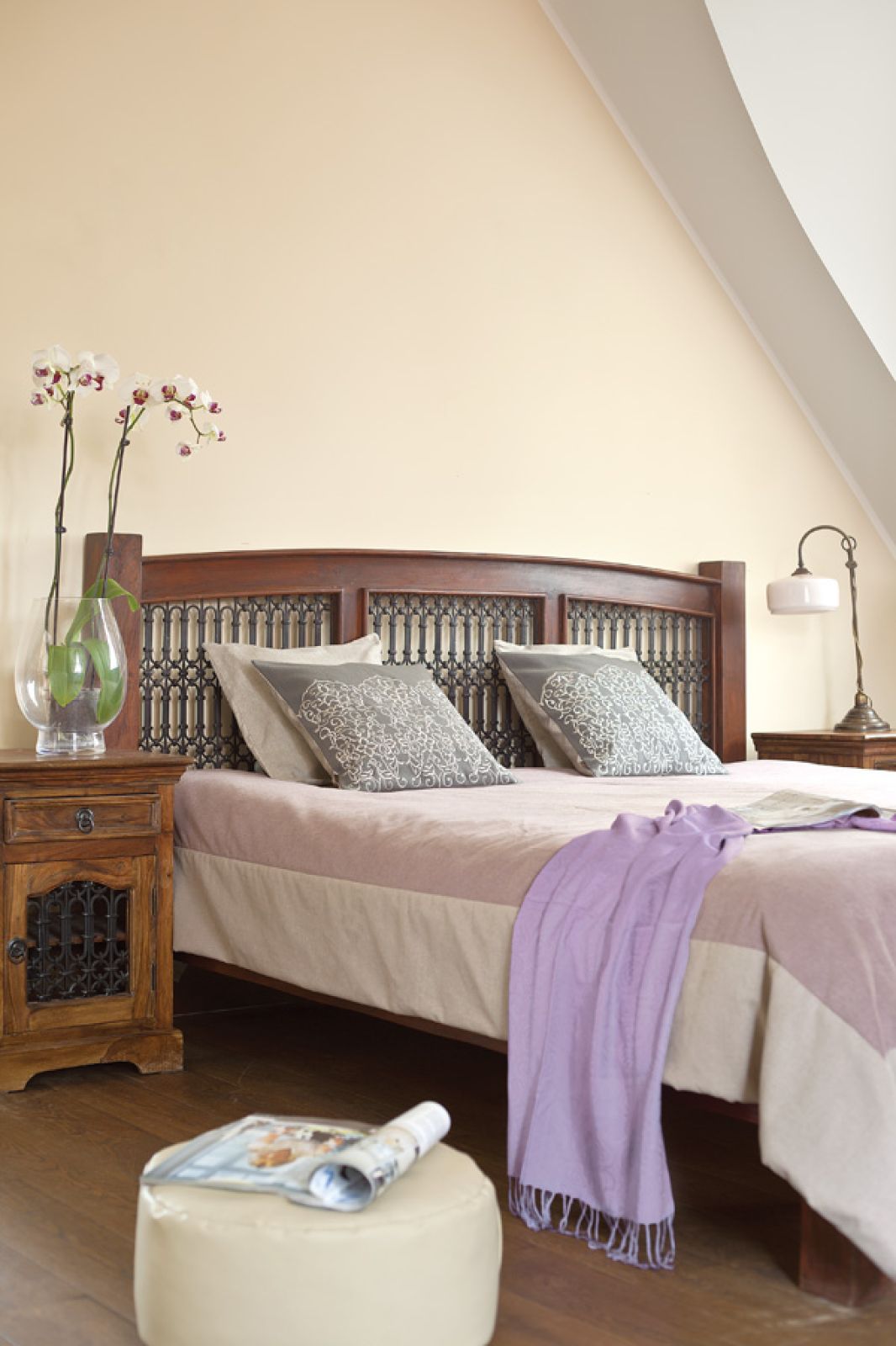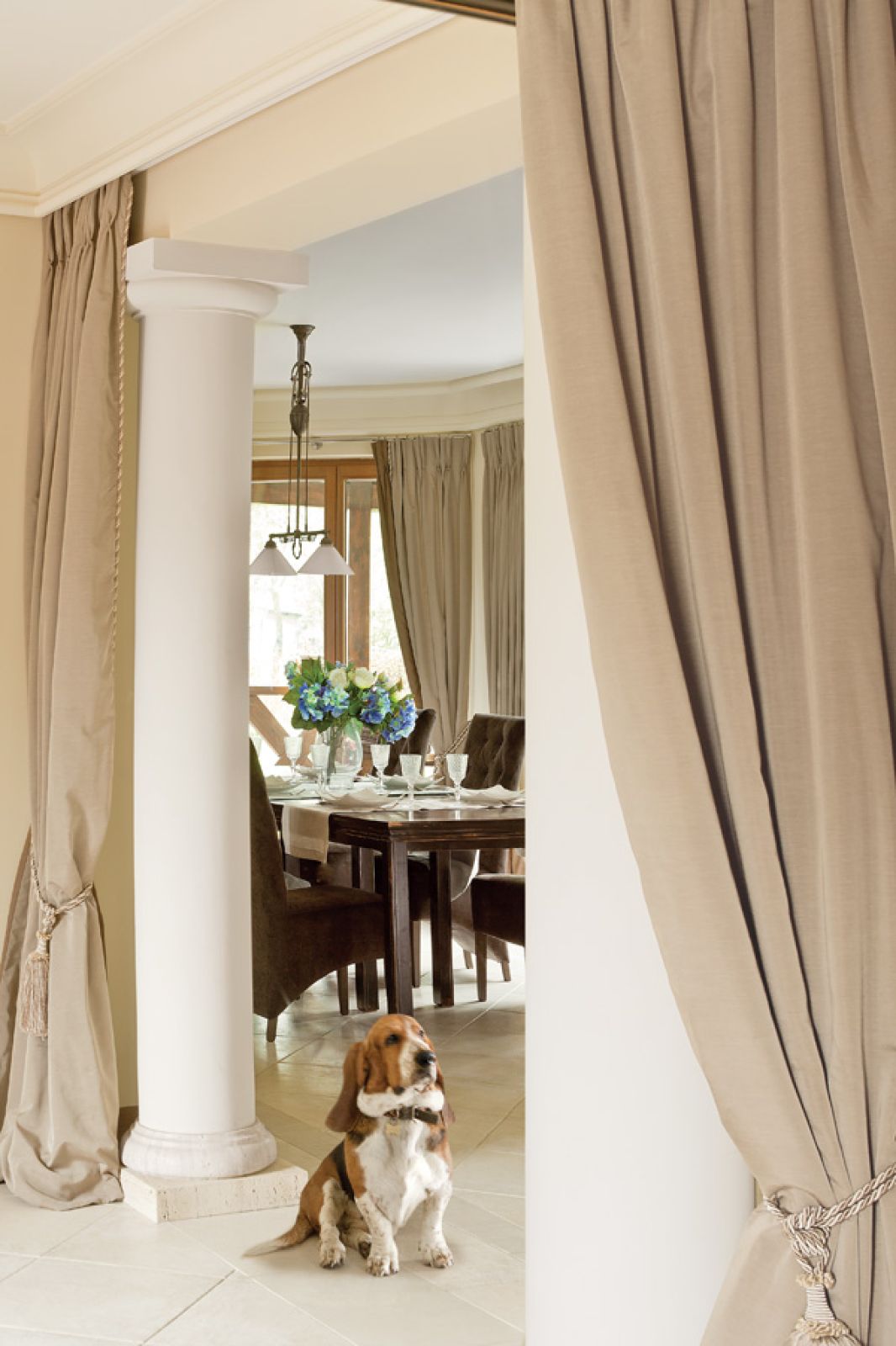 Stanęło więc na kremowo-beżowych wnętrzach, wypełnionych zbieranymi przez lata klasycznymi meblami. Przy dębowych szafach i kredensach po dziadkach czarny wyrazisty granitowy blat wypadł znakomicie. Podobnie jak komplet do jadalni. – Stół był ogromny, martwiliśmy się, czy nie przytłoczy kuchni, ale okazało się̨, ż̇e proporcje ma wprost idealne – opowiada Jola. Żeby nie było zbyt staroświecko, dodali trochę kolonialnych mebli.