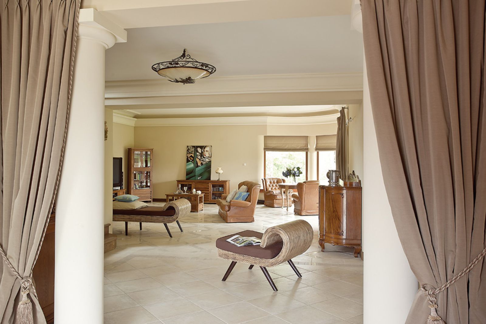 Z podobną fantazją pogodzili swoje marzenia o domu. W końcu maszyny, które najbardziej kręcą Adama, to rzeczy ponadczasowe. Absolutna klasyka gatunku. A klasyka z klasyką zawsze się dogadają. Przyznają jednak, że willę budowali długo. Może dlatego, że robili to pierwszy raz. A wcześniej marzyli o niej wiele lat. Na pewno dom miał być klasyczny i solidny. – Beż̇owo-brązowy – uś́ciś́la Jola. – Z mocnymi, „męskimi” detalami i miejscem na moją stajnię – dopowiada Adam.