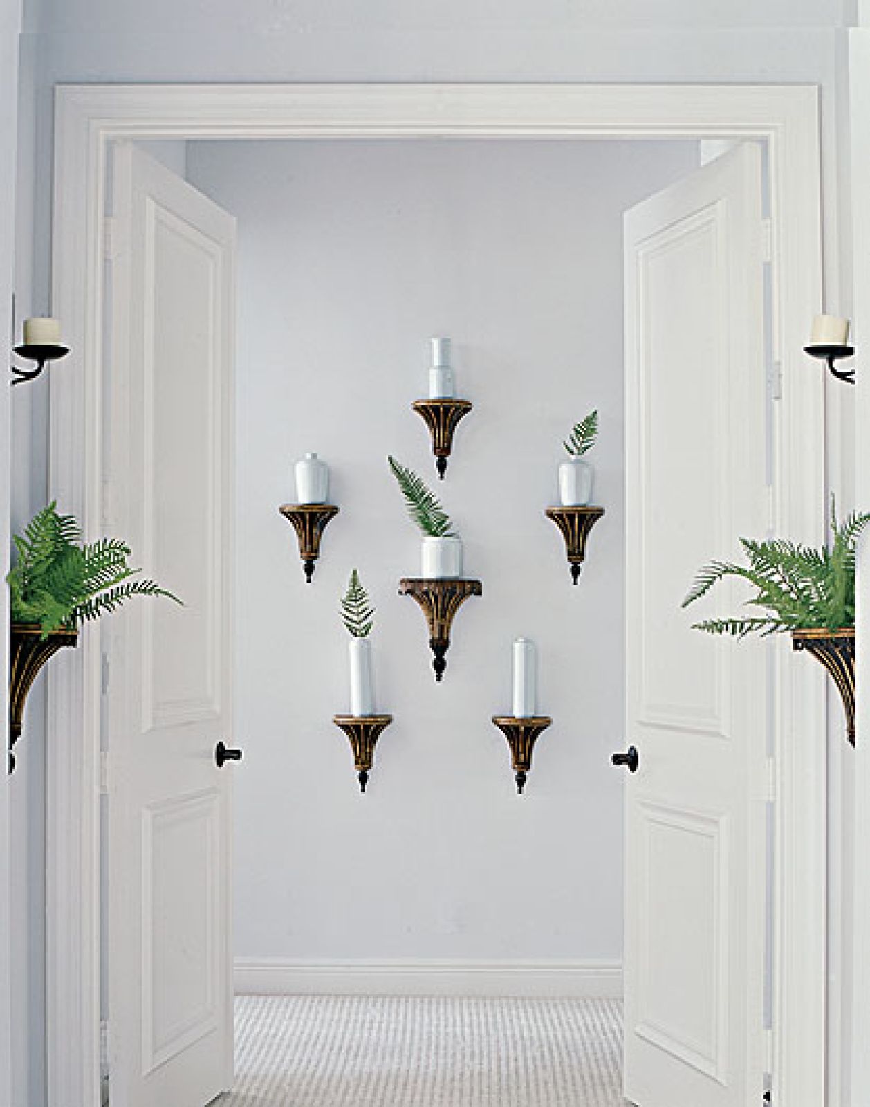 Mnie, oprócz pomysłowości Donovana, najbardziej spodobało się jego poczucie humoru – choćby ściana w holu. Ułożył na niej kompozycję ze starych kinkietów, tyle tylko że zamiast żarówek dodał im białe wazoniki i powkładał w nie liście paprotek. Naprawdę trudno się nie uśmiechnąć. A sam zainteresowany przyznaje: – Lubię urządzać domy, w których można trochę pożartować. Nie trzeba przecież wszystkiego brać tak bardzo serio.