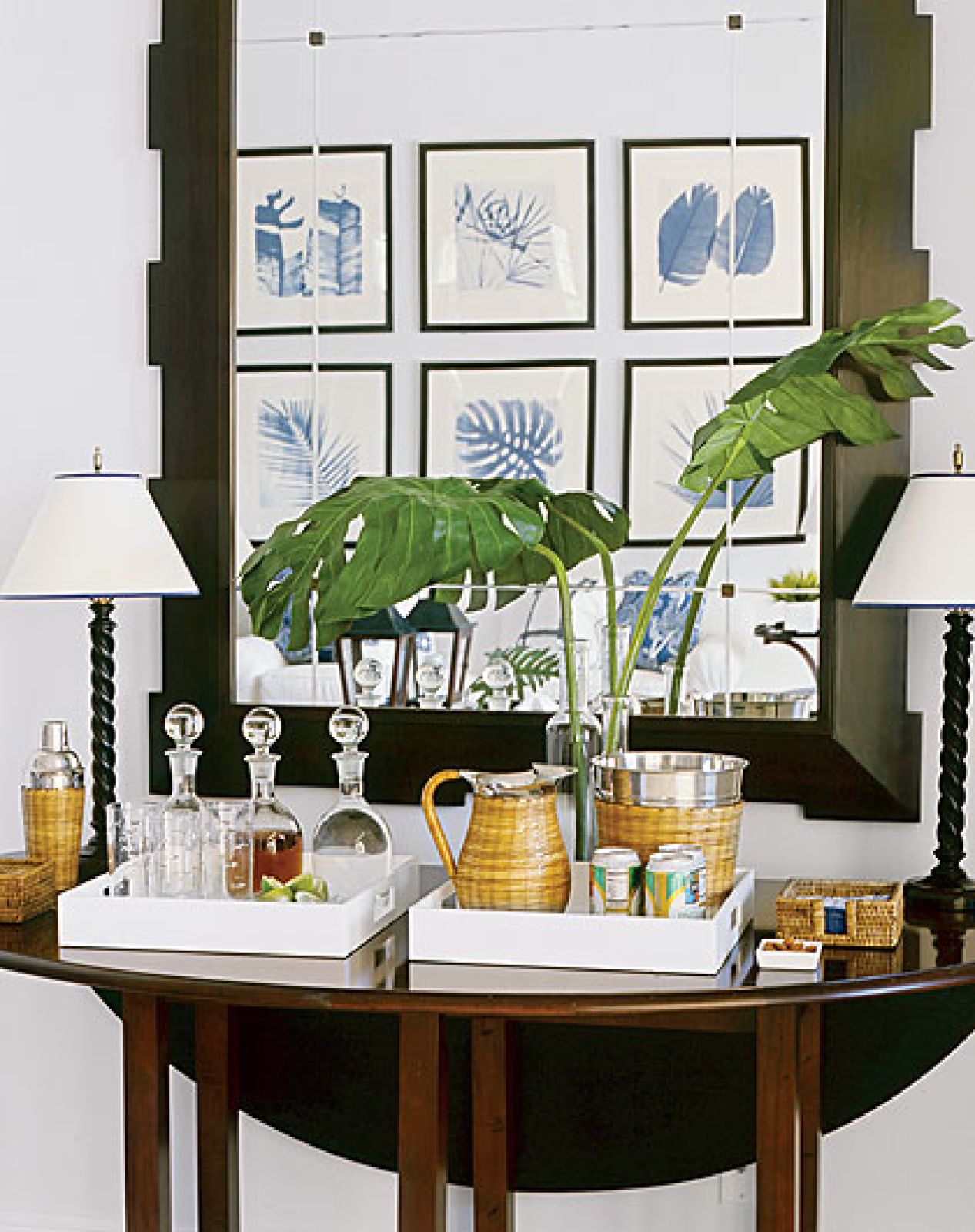 Nadmiar wzorów uspokoiła symetria – jeśli ustawiał konsole, to dwie identyczne obok siebie. Powtarzają się także lampy, latarenki, stoliki rattanowe. Na końcu dodał kilka detali charakterystycznych dla tropikalnych domów (w tym roku zimą na południu Florydy padł rekord ciepła – było 30°C, najwięcej od 24 lat!) – shuttersy z grubymi lamelkami, terakotowe podłogi, sizalowe dywany i wentylatory.
