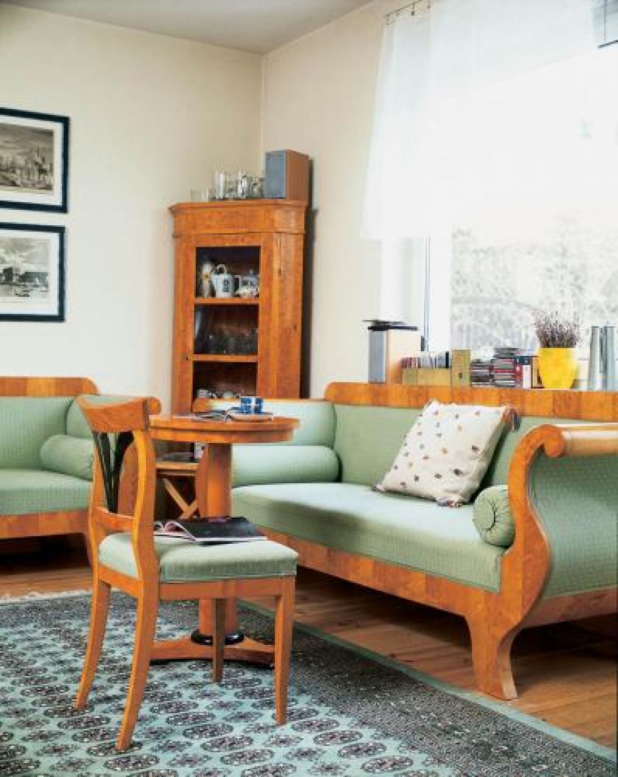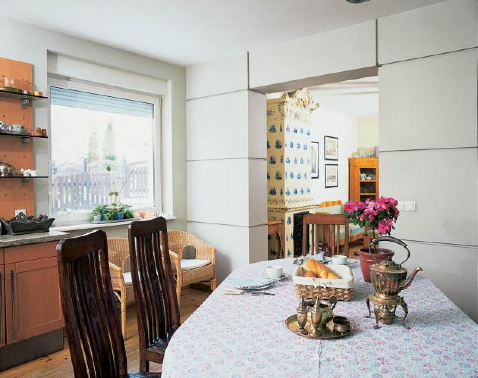 Także kuchnię właściciele zrobili sobie nowoczesną, bo taka jest najbardziej praktyczna. Okazuje się, że stylowym meblom wcale takie towarzystwo nie przeszkadza. Nawet stary miśnieński piec wygląda, jakby stał tu od zawsze. A żeby meblom z historią dodać trochę lekkości, na ścianach i obiciach jest dużo zieleni. Teraz antyki z pewnością nie czują się staro.