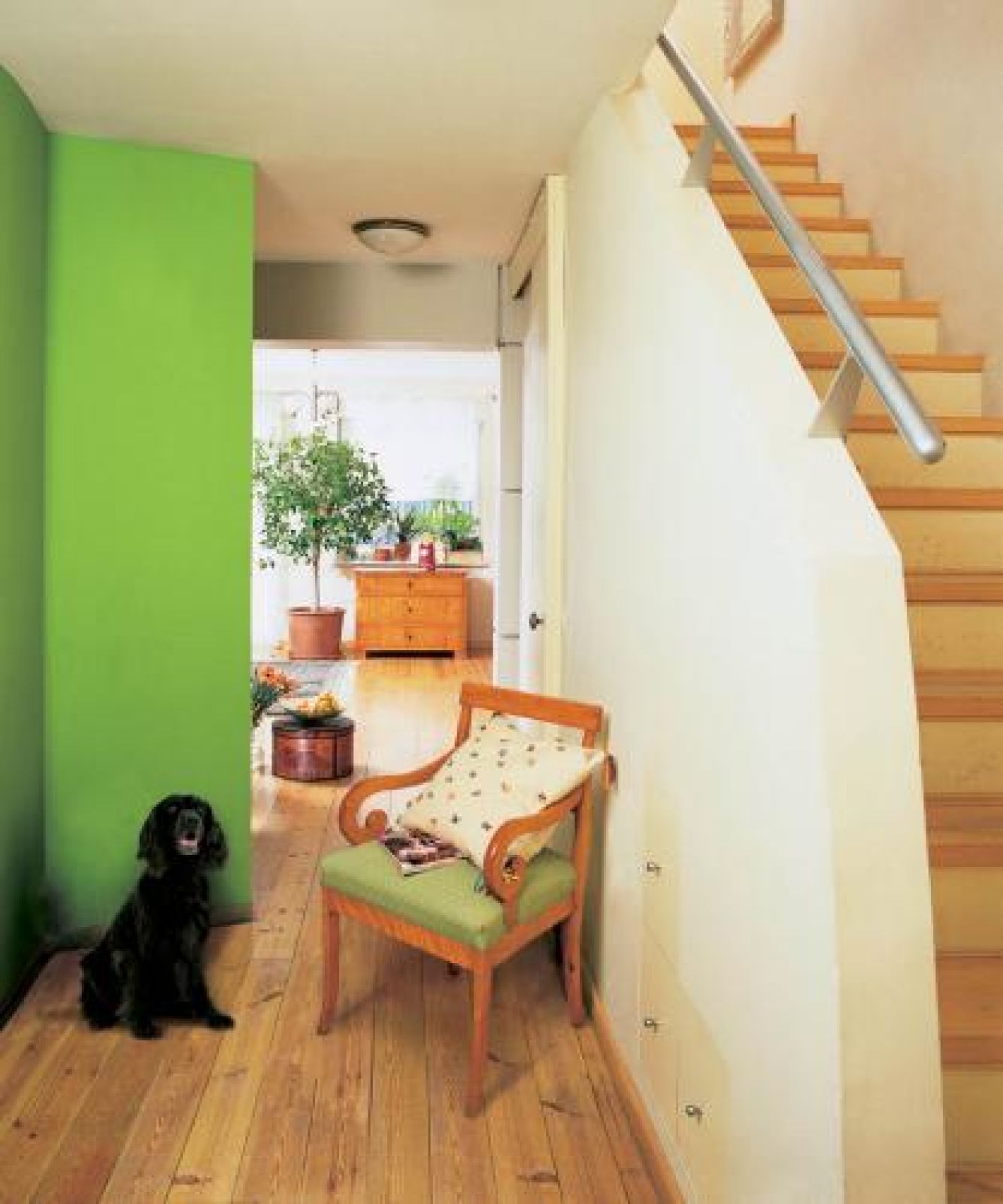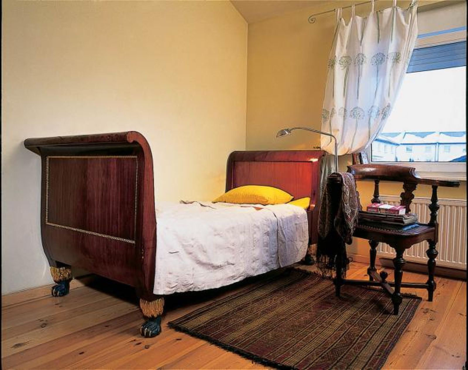 Postanowili pogodzić współczesną architekturę i wyposażenie świeżo kupionego segmentu z antykami, do których tak przywykli. Nowy dom musiał pójść tylko na jedno ustępstwo – zamiast parkietu dostał podłogę z desek. Okna, drzwi, ściany, schody i poręcze pozostały sobą – są nowe i wcale się z tym nie kryją.
