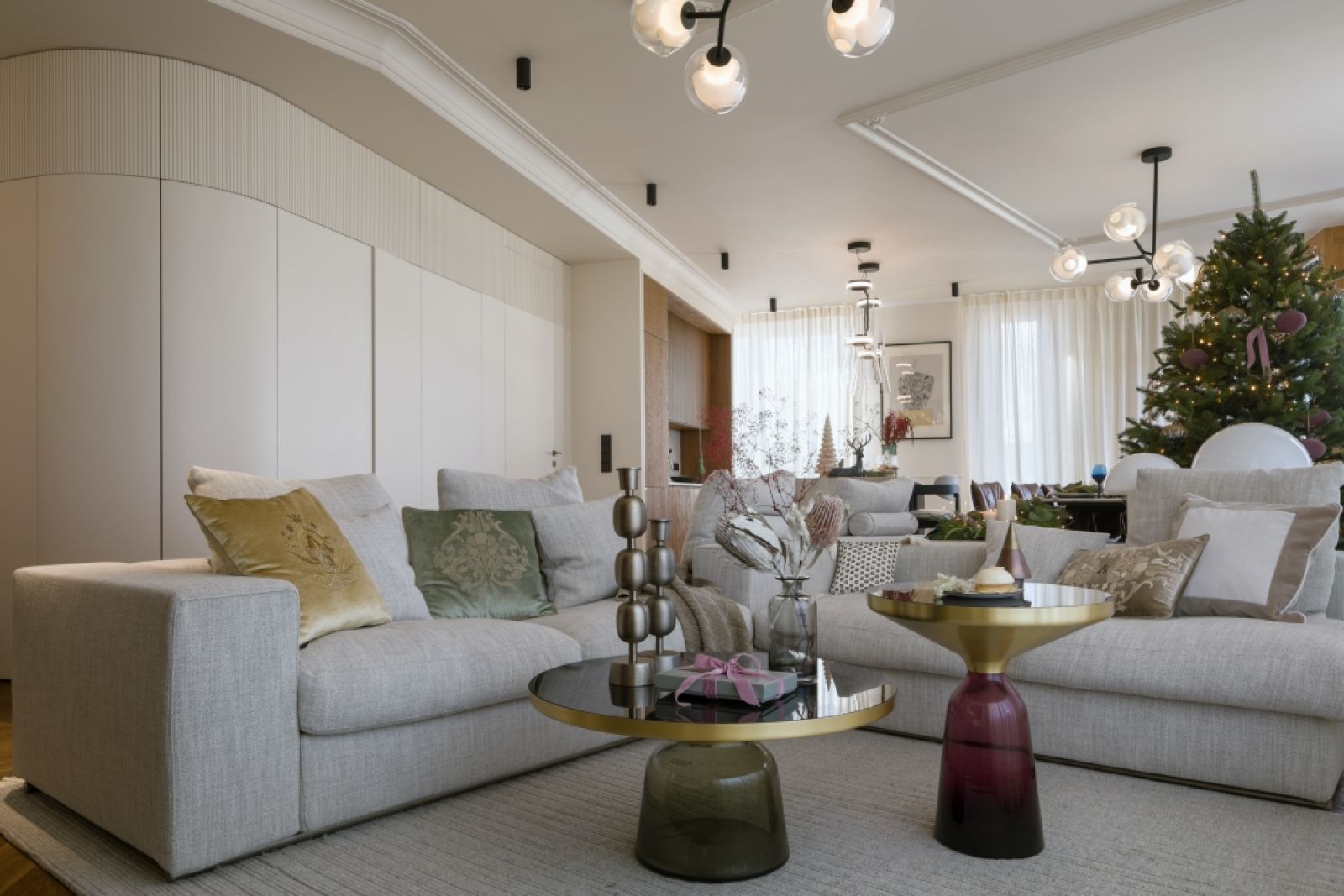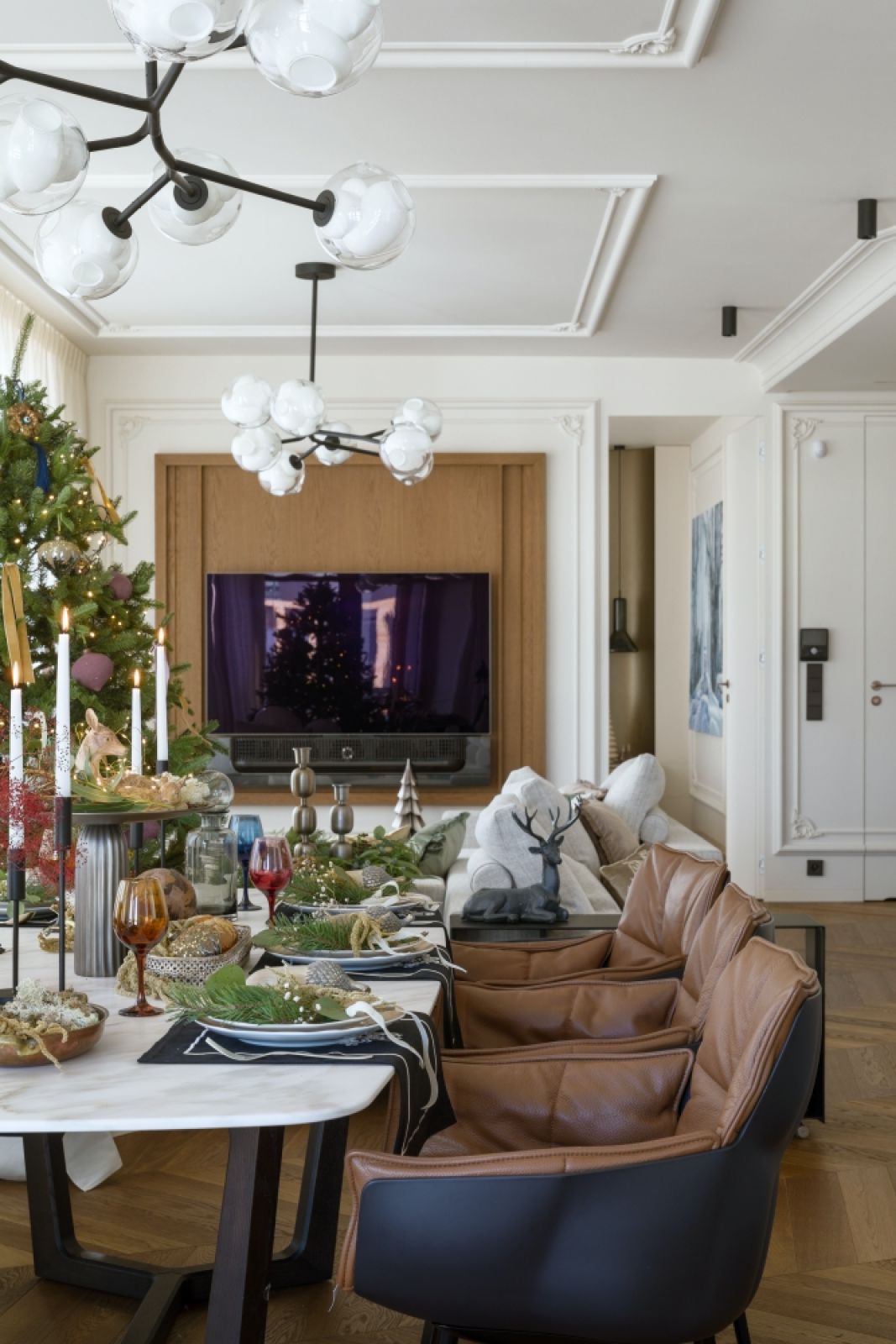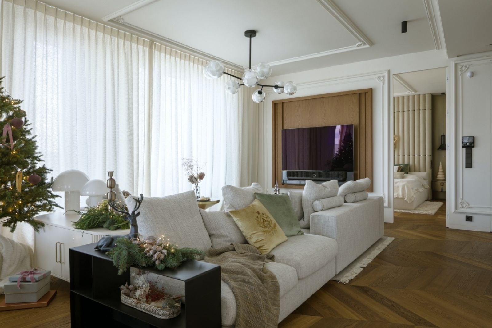 Stylowe i przytulneInspiracją do projektu tego mieszkania był subtelny styl francuski, który architekci z Hola Design dostosowali do potrzeb współczesnej rodziny. Eleganckie wnętrze wzbogacili nowoczesnymi formami mebli. W świątecznej aranżacji apartament emanuje ciepłem, blaskiem i atmosferą pełną magii.