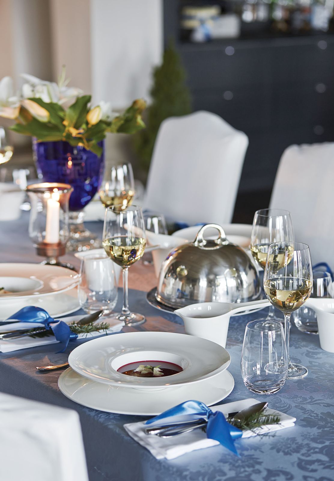 – Zimą błyskawicznie zapada zmrok i robi się wręcz czarno – mówi gospodyni. – Ani jednej latarni aż po horyzont. I nagle my zapalamy kandelabry, lampiony i świece. To niesamowite uczucie. Dla mnie Wigilia ma trochę pogański posmak. Tego dnia wraca do nas jasność. Wchodzisz z zimnego i ciemnego w ciepłe i pachnące. Dwór rozbłyska na polach jak gwiazda.