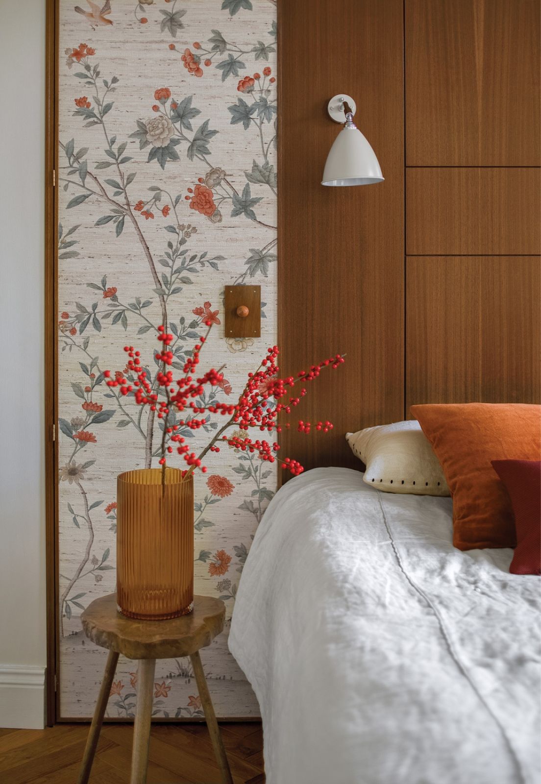 Jest ich w mieszkaniu całe mnóstwo, choć teraz wcale ich nie widać. Wymagało to sporo kombinowania. O ile w holu ściana z szafą pod skosem dodaje uroku, o tyle w sypialni stanowiła nie lada problem. Bo jak ustawić łóżko? – Aby „wyprostować” ściany, użyłam wbudowanych szafek – zdradza. – Te po lewej stronie łóżka zaczynają się od kilku centymetrów, po prawej mają głębokość aż siedemdziesięciu.
