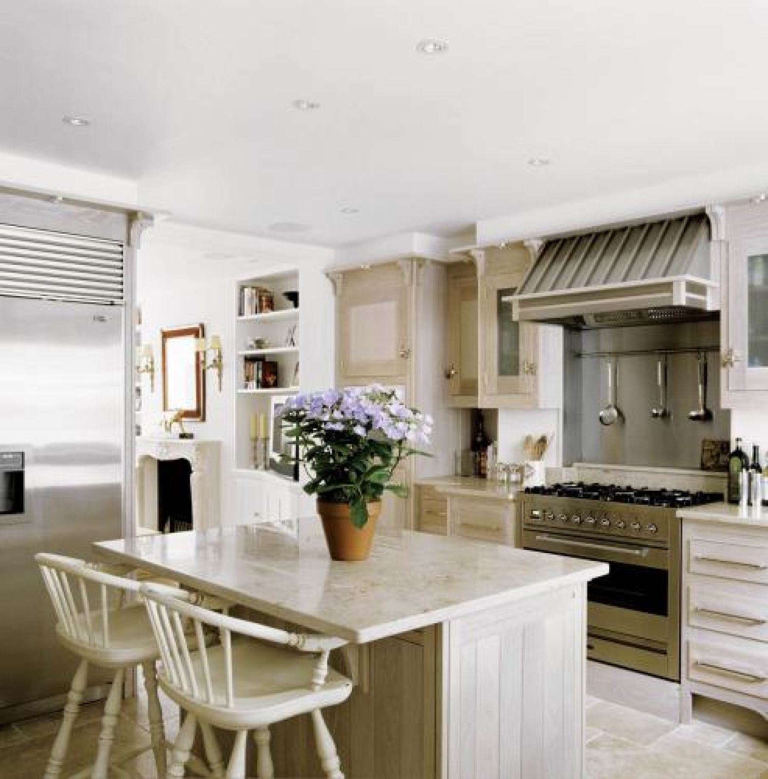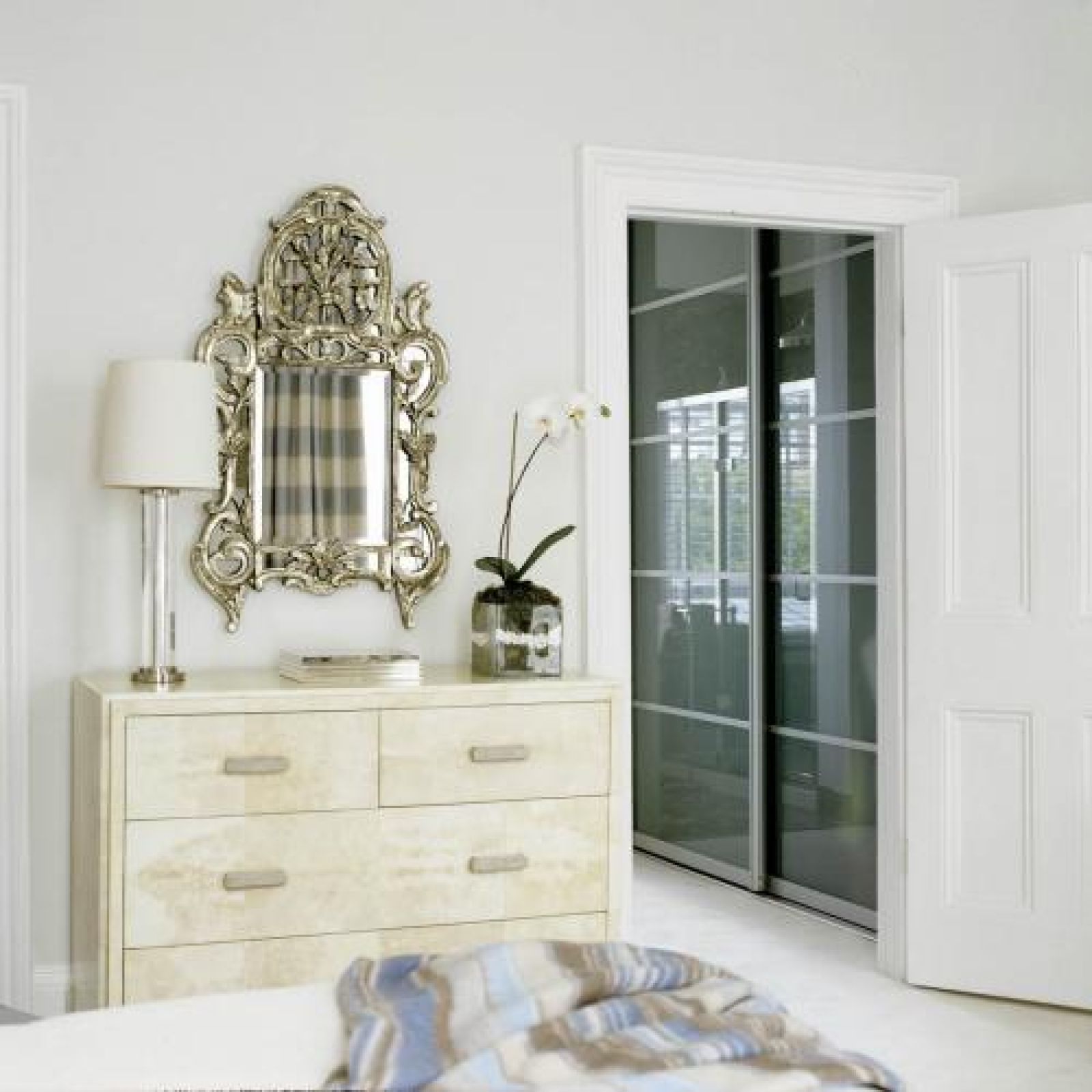 Lustra, które Gradey zgromadził w domu przyjaciół, pochodzą przeważnie z połowy XIX wieku. Młodsze znajdziemy w salonie (weneckie z lat 40. ubiegłego wieku) i w sypialni gospodarzy – piękne współczesne zwierciadło w ramie z białego złota od florenckiego mistrza.