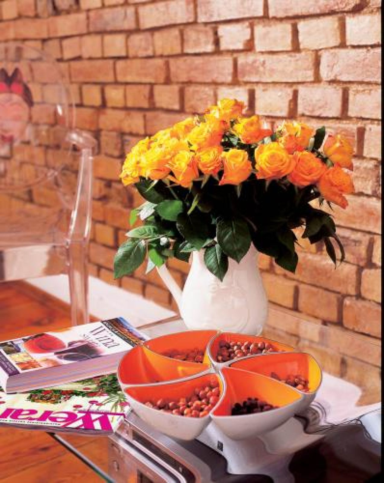 Podczas kameralnej imprezy powstała ceglana ściana w pokoju dziennym. Po wybornej kolacji, przy muzyce i w przerwach między tańcami Przybyłowie skuli tynk wspólnie z kuzynem Tomka i siostrą Oli. Taka sama ściana jest ozdobą ogródka wydzielonego z części podwórza. To ulubione miejsce Bryłki, szorstkowłosego jamnika, miniaturki.