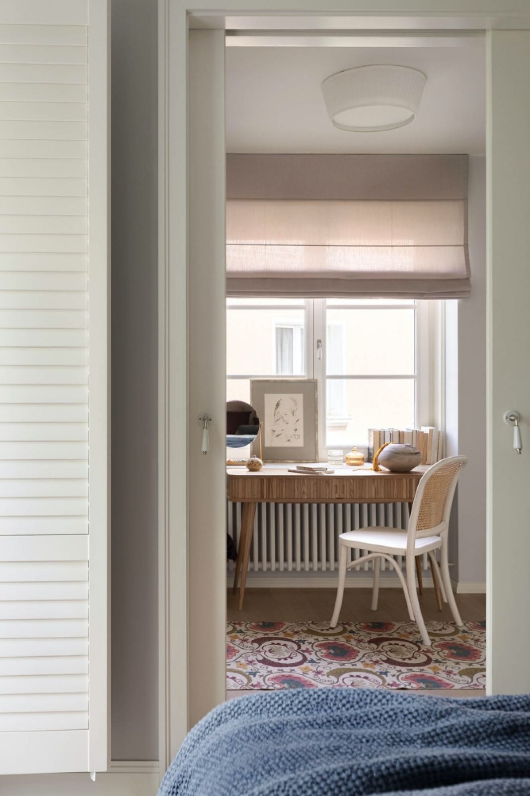 Jakby się przyjrzeć uważniej, można u nas też znaleźć nawiązania do stylu angielskiego czy do Hamptons (choćby shuttersy w sypialni). Jako studentka pracowałam w Szwecji. Ludzie, których dziećmi się zajmowałam, mieli niesamowity gust: w domu niby nic do siebie nie pasowało, nie było kompletów, a jednak wszystko tworzyło całość.