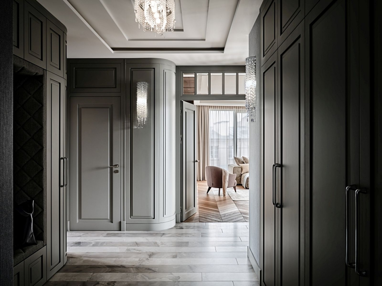 Architekt stanął tu przed niełatwym zadaniem. Musiał znaleźć sposób na to, aby projektowana przestrzeń odpowiadała budynkowi łączącemu starą i nową tkankę. Wykorzystał motywy charakterystyczne dla warszawskich mieszkań XIX i XX wieku, harmonijnie zestawiając je ze współczesnymi. Elementy stylizowane, jakich unika w zupełnie nowych apartamentowcach, znalazły oparcie w kontekście budynku oraz jego otoczenia. – Łączenie elementów nowoczesnych z dawnymi zawsze jest wyzwaniem. Jednak przeszukiwanie dziejów tego miejsca i poszukiwanie obiektów harmonizujących z tym kontekstem sprawiało, że proces projektowy był zarówno trudniejszy, jak i ciekawszy – mówi Roland Stańczyk. Finalnie powstało wnętrze spójne z charakterem budynku, a nawet z całością założenia architektonicznego zrewitalizowanego z wielką dbałością o detale historyczne.