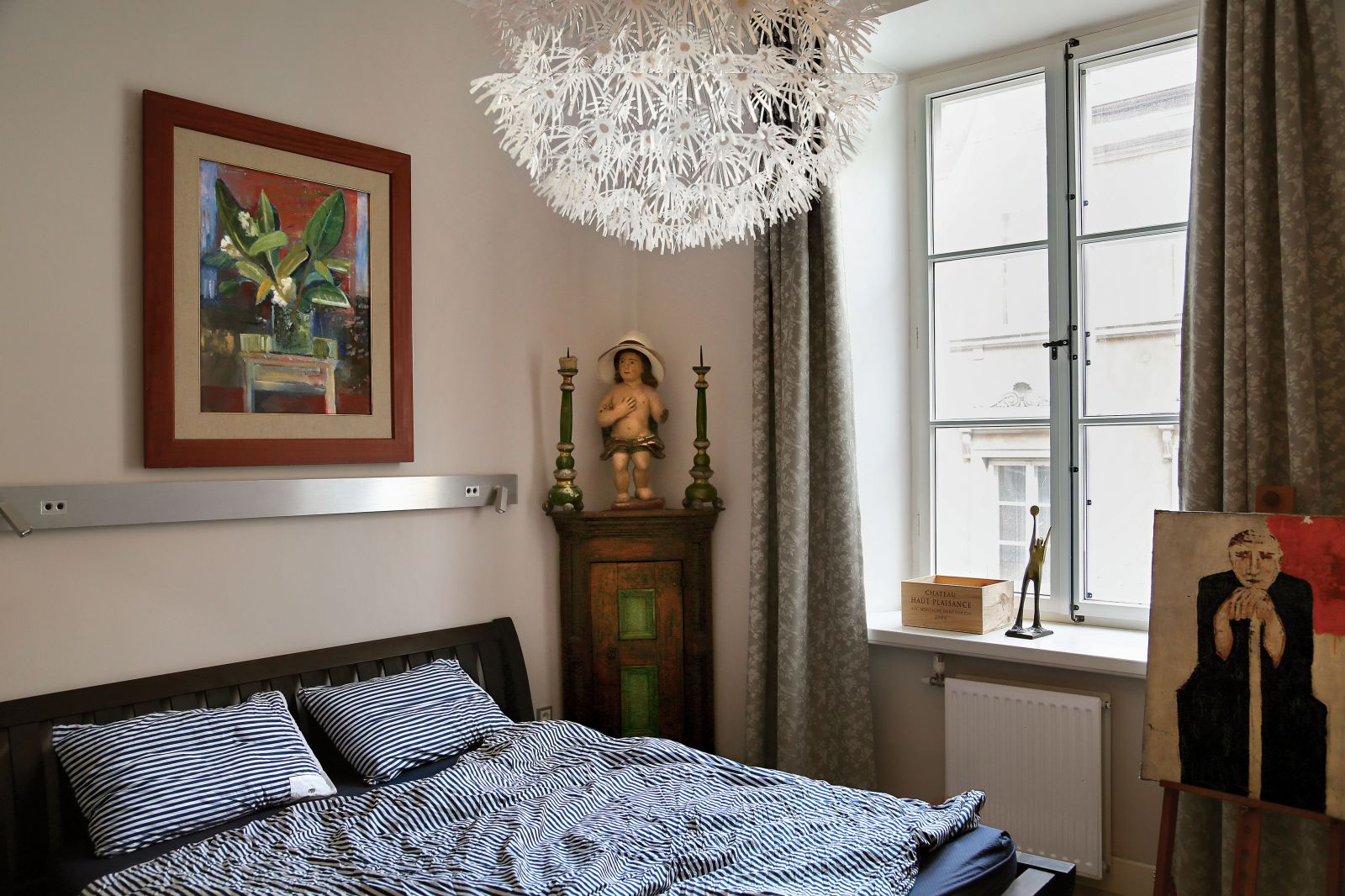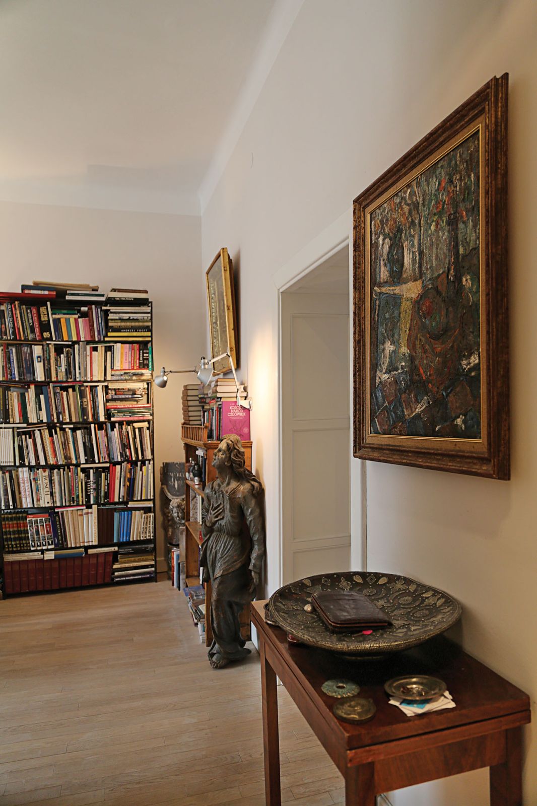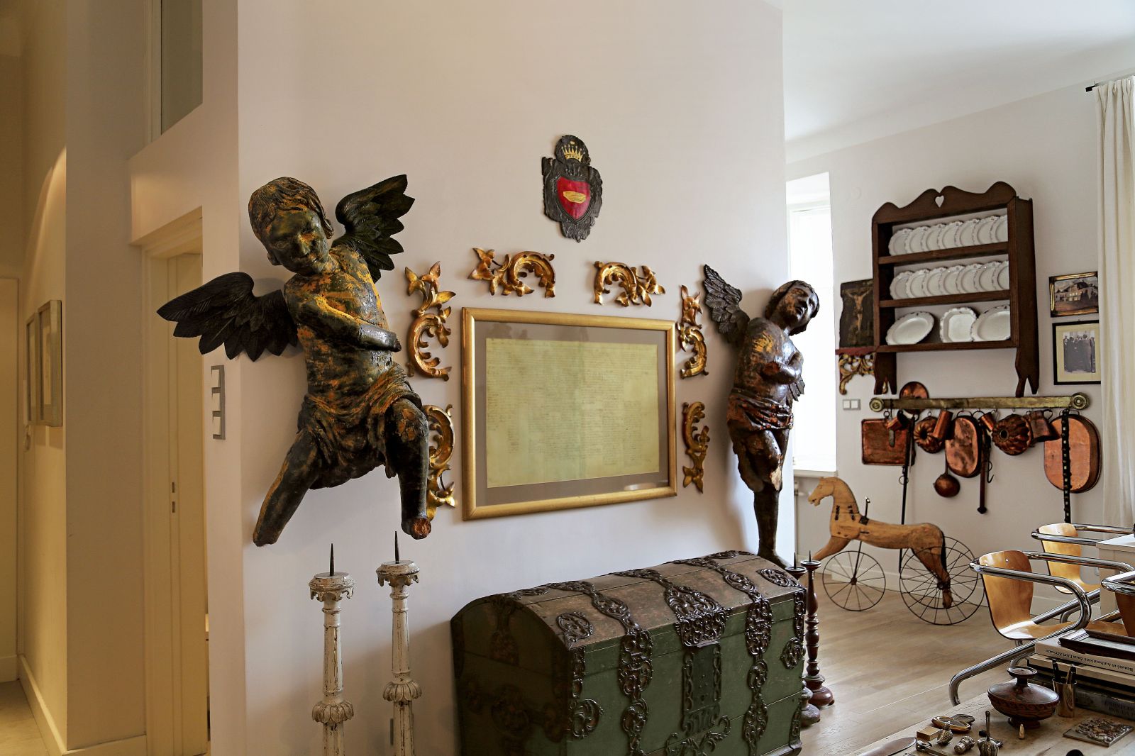 – Proszę spojrzeć na mojego Chrystusa, który tańczy twista – żartuje, wskazując na jedną z rzeźb. W domu jest pokaźna kolekcja krucyfiksów. Obok barokowej skrzyni wiszą dwa XVII-wieczne anioły z wiejskiego kościoła. Skrzydła dorobiono, niestety, w XIX wieku. Na ścianie anioły flankują drzewo genealogiczne ze strony ojca pana Filipa, ciągnące się aż do średniowiecza. Po przeciwnej stronie malowana szafa z epoki, jedna z dwóch do pary, a na niej więcej rzeźb – między innym barokowy archanioł Gabriel i święty Florian. Na ścianach wiszą sztychy z zielnika Basiliusa Beslera. Ze sztuki najnowszej ma w sypialni oprawione rysunki sześcioletniej córki.