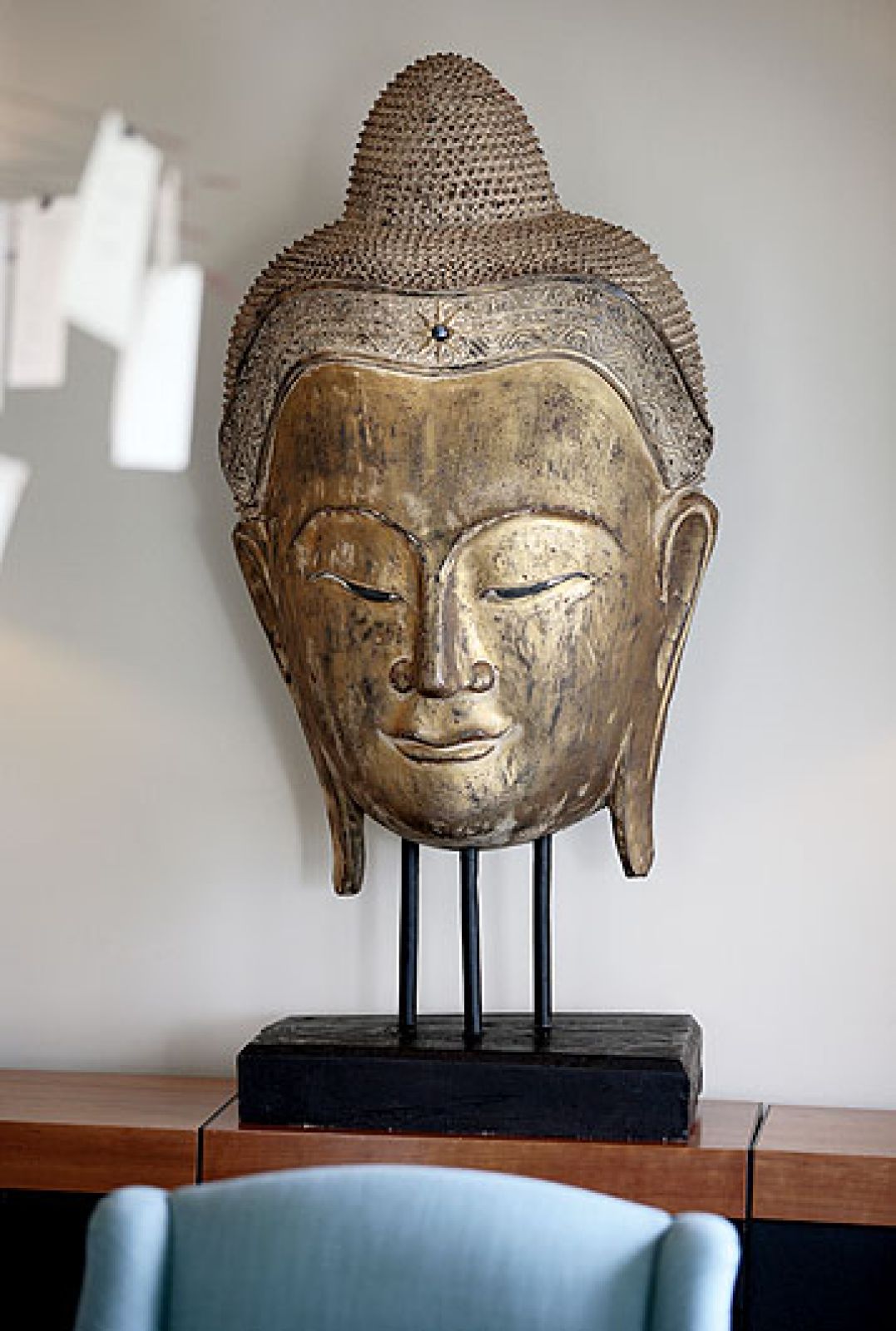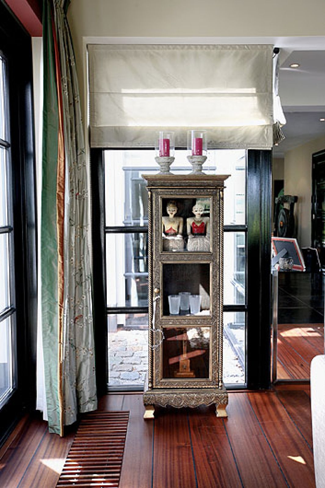 Choć wschodnie meble i bogato zdobione dodatki wydają się ciężkie, wcale nie przytłaczają wnętrza. Mahoniowe i bazaltowe podłogi też nie dominują. Może dlatego, że pokoje są wysokie i wpada do nich dużo światła.